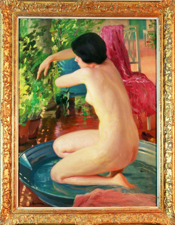 Localizado y rubricado en el reverso. Etiqueta de la galería Art Center Gallery the Claude de Vermont U.S.A. en el reverso.