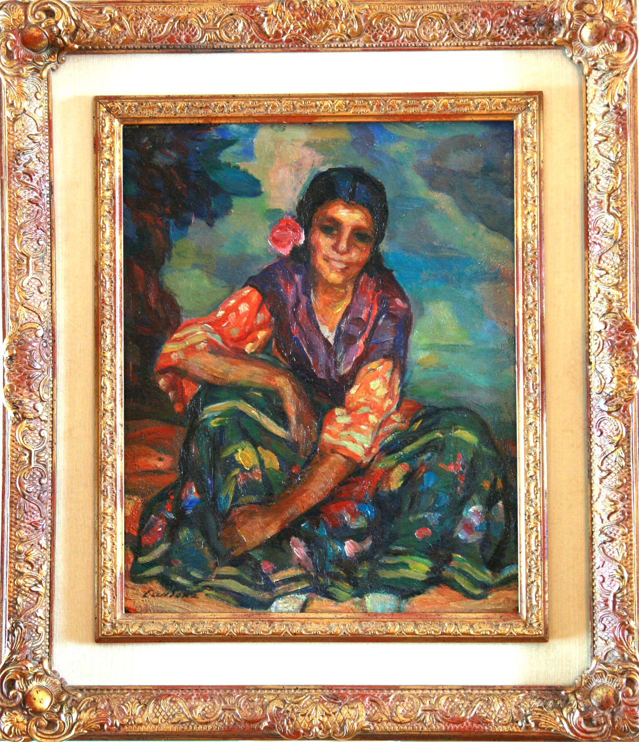 CARDONA LLADOS, Joan - Barcelona, 1877 - 1957 - Alumno de la Escuela e Bellas Artes de la Lonja de Barcelona. En 1897, fue distinguido con un premio en el certamen artístico-literario, organizado por la Academia Mariana de Lérida. Colaboró como dibujante en las revistas barcelonesas, Hispania y El Gato Negro. Después de trasladarse a París, forma parte del grupo de las grandes personalidades del dibujo que a principios del Siglo XX, obtuvieron más popularidad, en la Europa del arte así como Cappiello., Sem, Steinien, Roubille etc. Situado en la ciudad del Sena, colabora con las revistas Le Rire, Jugend y Simplicissimus. Expuso en el Salón d´Automne y en el de la Société Nacionale, con gran éxito, alcanzando el título de “sociétaire”. Por la misma época, el Museo de Luxemburgo, le adquiere una pintura para sus instalaciones. Cardona Lladós implica prácticamente toda su obra en asuntos mundanos parisinos y es considerado, hermano en estilo del dibujante Gosé. Sobre 1907, cambia prácticamente su forma de proyectar su obra, a un estilo mucho más español, y toma parte en la Vª Exposición Internacional de Bellas Artes, celebrada en Barcelona. El estilo de sus majas y sus gitanas, cautivan a la sociedad artística catalana, y celebra en Barcelona varias exposiciones individuales con gran éxito. Con su óleo “La maja”, participa en la Exposición Internacional de Arte celebrada en 1929. Sus obras, figuran en distintos museos y en colecciones particulares, tanto catalanas como españolas.