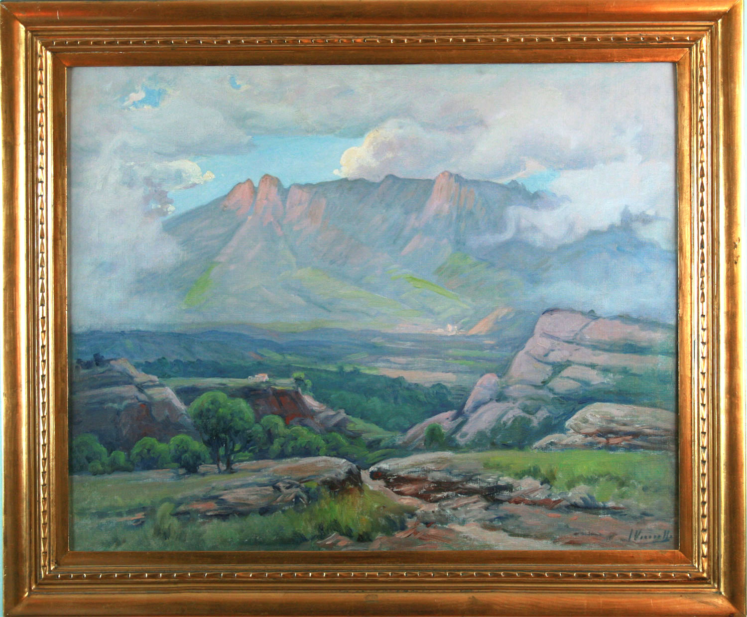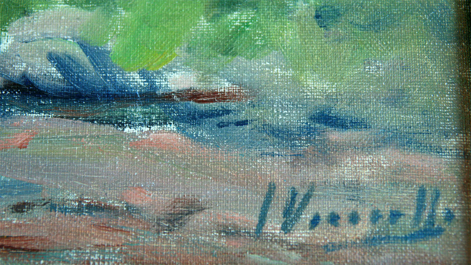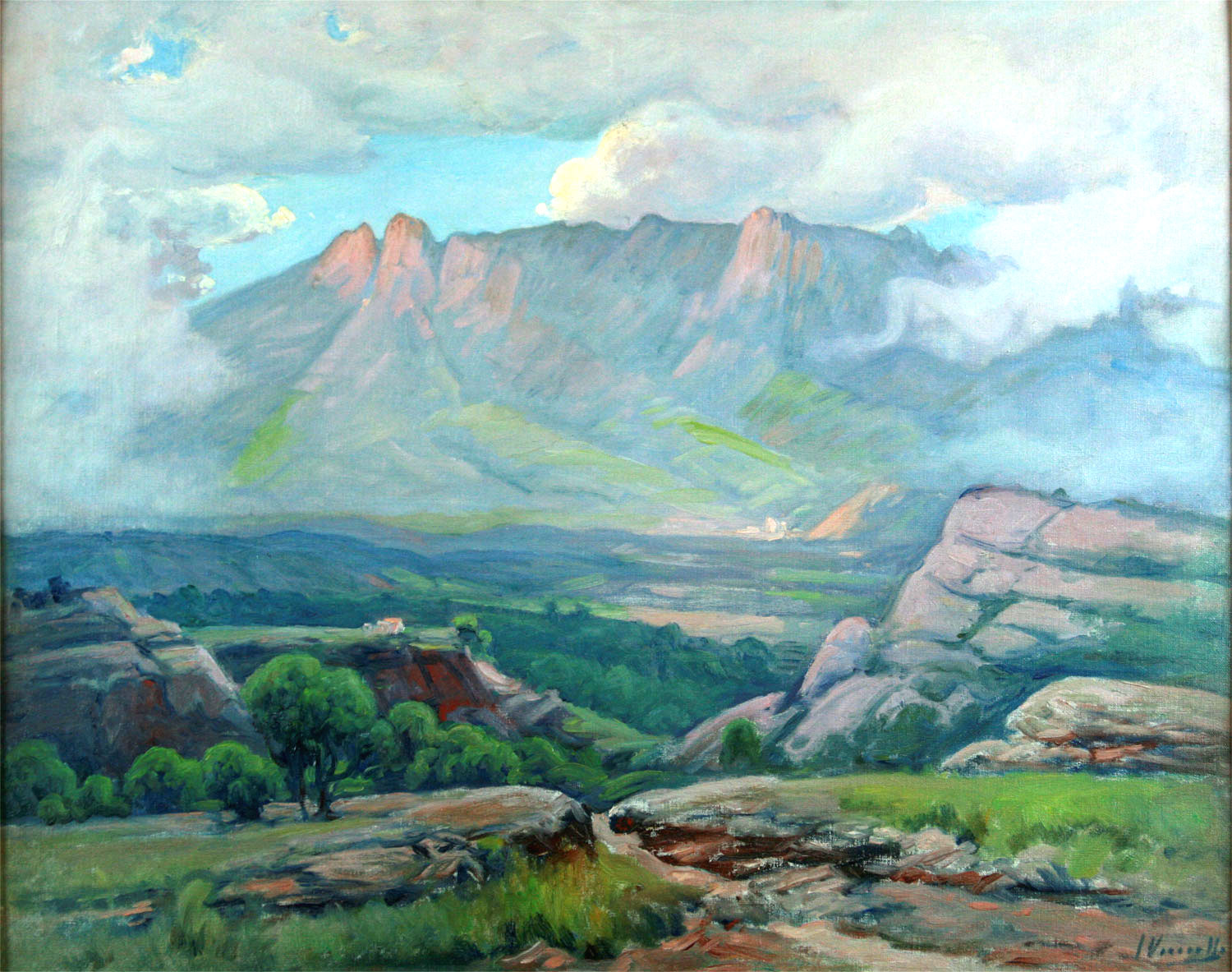 VANCELLS VIETA, Joaquín Barcelona, - 1866 – 1942 - A poco de nacer, su familia se estableció en Tarrasa, en cuya ciudad, cursó sus primeros estudios de dibujo y pintura, que luego perfeccionó trabajando al natural en los alrededores de la ciudad. Después participó en concursos y certámenes locales, siendo en todos ellos distinguido y premiado, hasta que en 1891 presenta un paisaje vallesano en la barcelonesa Sala Parés que fue muy elogiado. En la Exposición de Bellas Artes, de Barcelona presenta un cuadro (titulado Febrer) que es adquirido por el Museo de la Ciudad. Posteriormente y a partir de 1896 presenta su obra en distintas exposiciones y certámenes en los cuales es distinguido y premiado con primeras medallas. Con Dionisio Baixeras y Juan Llimona, pinto los plafones del prebisterio de la actual Basílica de Montserrat. También colaboró en varios cuadros de su amigo el pintor de temas militares José Chuscas en los cuales el paisaje que los ambienta es obra suya. Vancells, espíritu sensible , se dejó influir por los consejos de sus amigos Modesto Urgell y Alejandro de Riquer; pero más que la técnica pictórica de éstos artistas practicó una pintura naturalista llena de espontaneidad. Su arte se considera emparentado con el del pintor y maestro Joaquin Vayreda . Fue miembro de la V Exposición Internacional de Arte que en 1907 se celebró en Barcelona . Su firma fue muy solicitada en los mercados artísticos extranjeros y obras suyas figuran en los Museos de arte Moderno de Barcelona y de Madrid así como en muchas colecciones españolas y extranjeras.