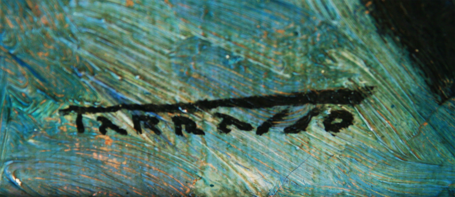 MARTINEZ TARRASSO, Casimiro – Barcelona 1900 - 1979 - Casimiro Martínez Tarrasó, se formó en la escuela de La Lonja de Barcelona, completó sus estudios en París donde pudo conocer de primera mano las obras fauvistas que sacudían el ambiente artístico parisino en éste momento. Cultivó el bodegón y los paisajes catalanes y mallorquines y realizó su primera exposición en 1928 en las Galerías Layetanas de Barcelona y desde entonces se sucedieron sus muestras en Barcelona, Madrid, Palma de Mallorca y Bilbao. Entre sus premios destacan el Pollença en 1962 y el Santiago Rusiñol en 1972 así como las medallas obtenidas en diversas ediciones de los Salones de Otoño de Palma de Mallorca en 1967 – 1973 y la de Honor en 1970. La obra de Tarrassó, se caracteriza por la gran personalidad de su pincelada y colorido y su profunda obsesión por el cromatismo, determinante de una pintura profundamente sensorial y vitalista, con todo siempre fue considerado un pintor propiamente mediterráneo. A Tarrassó, se le atribuye la influencia paisajística de Joaquin Mir , sin embargo y al contrario de éste, completó sus estudios en un París por aquel entonces sacudido por la barbarie “fauve” y esto seguirá siendo visible en su obra a lo largo de toda su vida. A menudo empleaba para sus obras, grandes formatos y atrevidos acordes cromáticos ; de todos modos, y pese al desbordamiento y grandilocuencia de algunos de sus cuadros, pintó paisajes de una considerable sensibilidad, oleos de pintor sincero y de una gran ingenuidad. Solía firmar ssu obras por su segundo apellido “TARRASSO” Está representado en diversas colecciones privadas nacionales e internacionales, así como en el Museo y Fondo Artístico de Porreras (Mallorca) y el de Arte Moderno Contemporáneo de Palma.