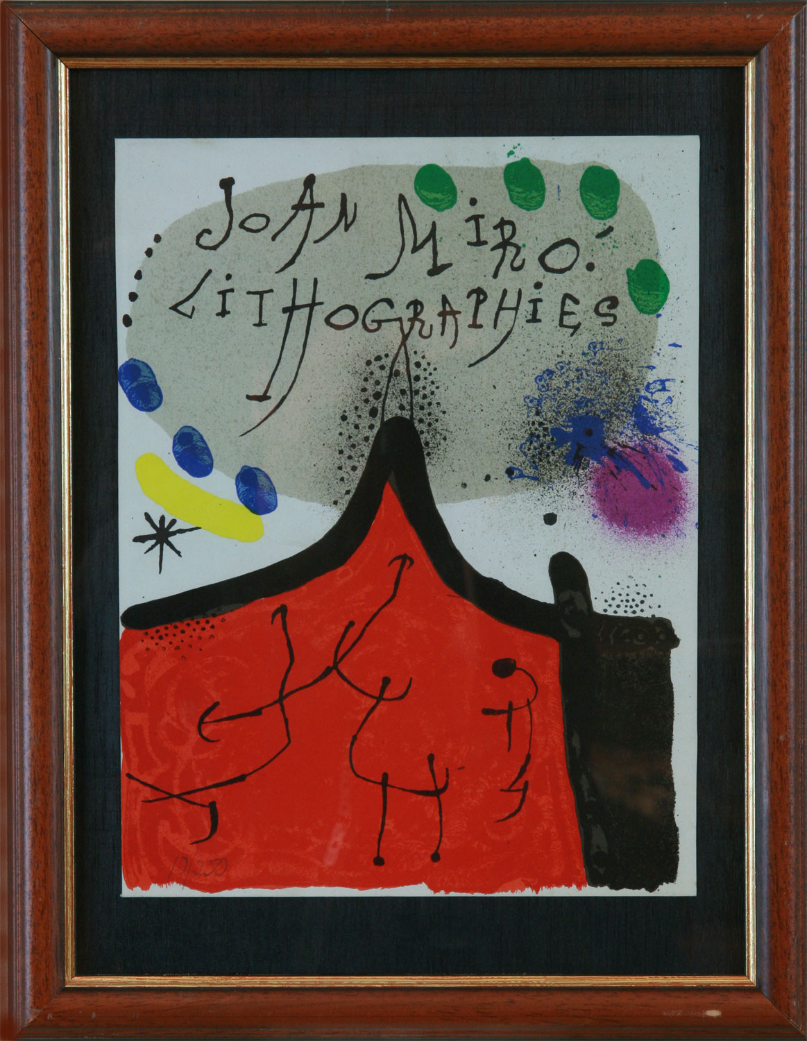MIRO FERRA, Joan, Barcelona 1893 Palma de Mallorca 1983 Estudió desde muy joven en la Escuela de Bellas Artes y más tarde se forma entre la Escuela de la Lonja y la Academia Galí de Barcelona, y en 1918 realiza su primera exposición en las Galerías Dalmau. Vivió en París y pasó épocas en Holanda y Estados Unidos. En 1920 se traslada a Paris donde se encuentra con Picasso,y los dadaístas, allí bajo la influencia de los poetas y pintores surrealistas, va madurando su estilo, trata de trasponer a lo visual la poesía surrealista, basándose en la memoria, la fantasía y lo irracional. Desde éste momento su estilo inicia una evolución que le lleva a abras más etéreas, en las que las formas y las figuras orgánicas se reducen a puntos, líneas y manchas de color abstractos. Su tercera exposición en Paris, en 1928 supone su primer gran triunfo ya que el museo de Arte Moderno de Nueva York adquiere dos obras suyas. Regresa a España en 1941, año en que dicho museo le dedica una retrospectiva que supondrá su definitiva consagración internacional. Además de pintor y dibujante se dedicó también a los decorados escénicos para óperas ballets y se dedicó de una forma especial al grabado. Su obra está expuesta en las mejores salas pinacotecas y museos de todo el mundo.