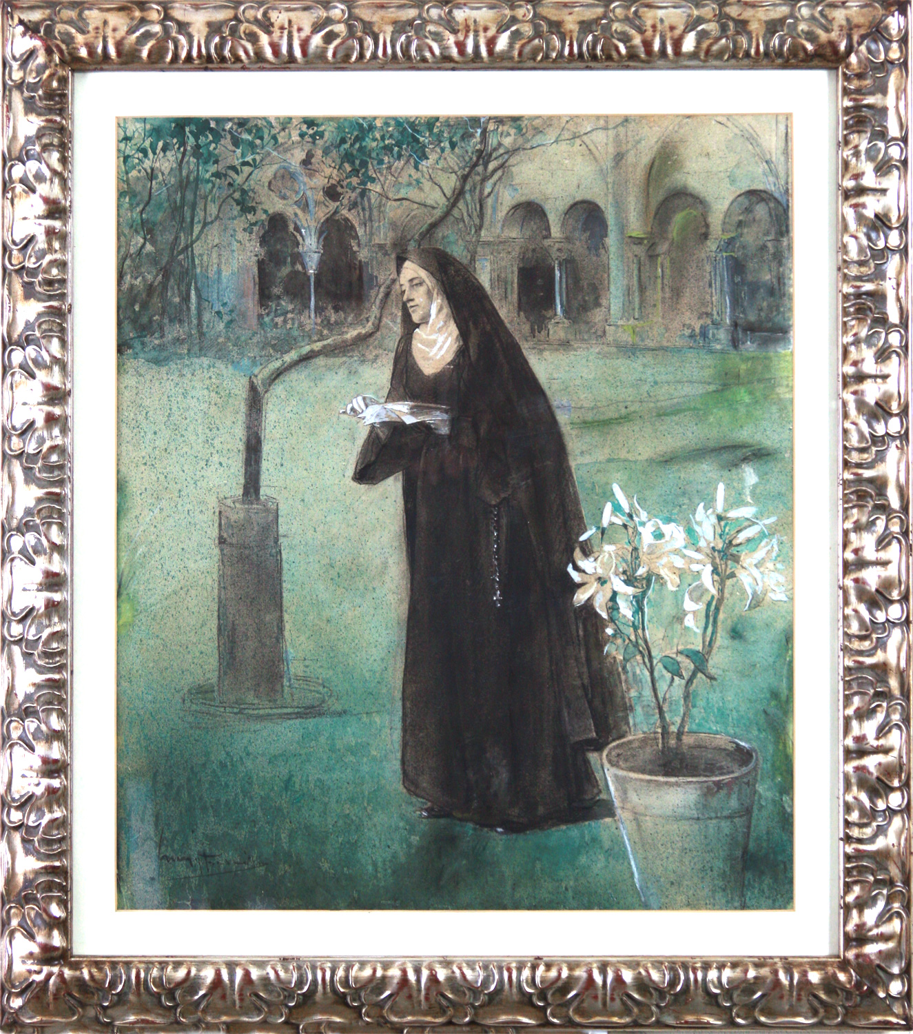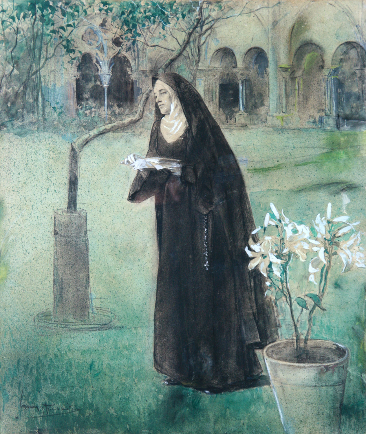"Religiosa en el jardín del claustro de Sant Benet de Baiges"
