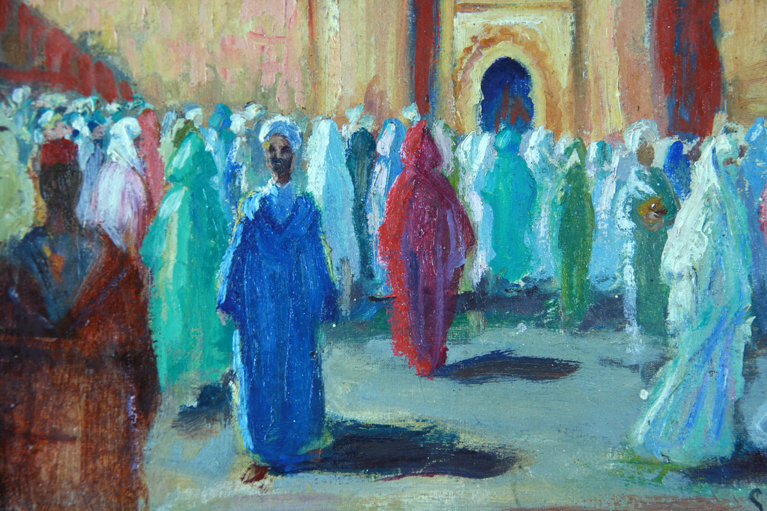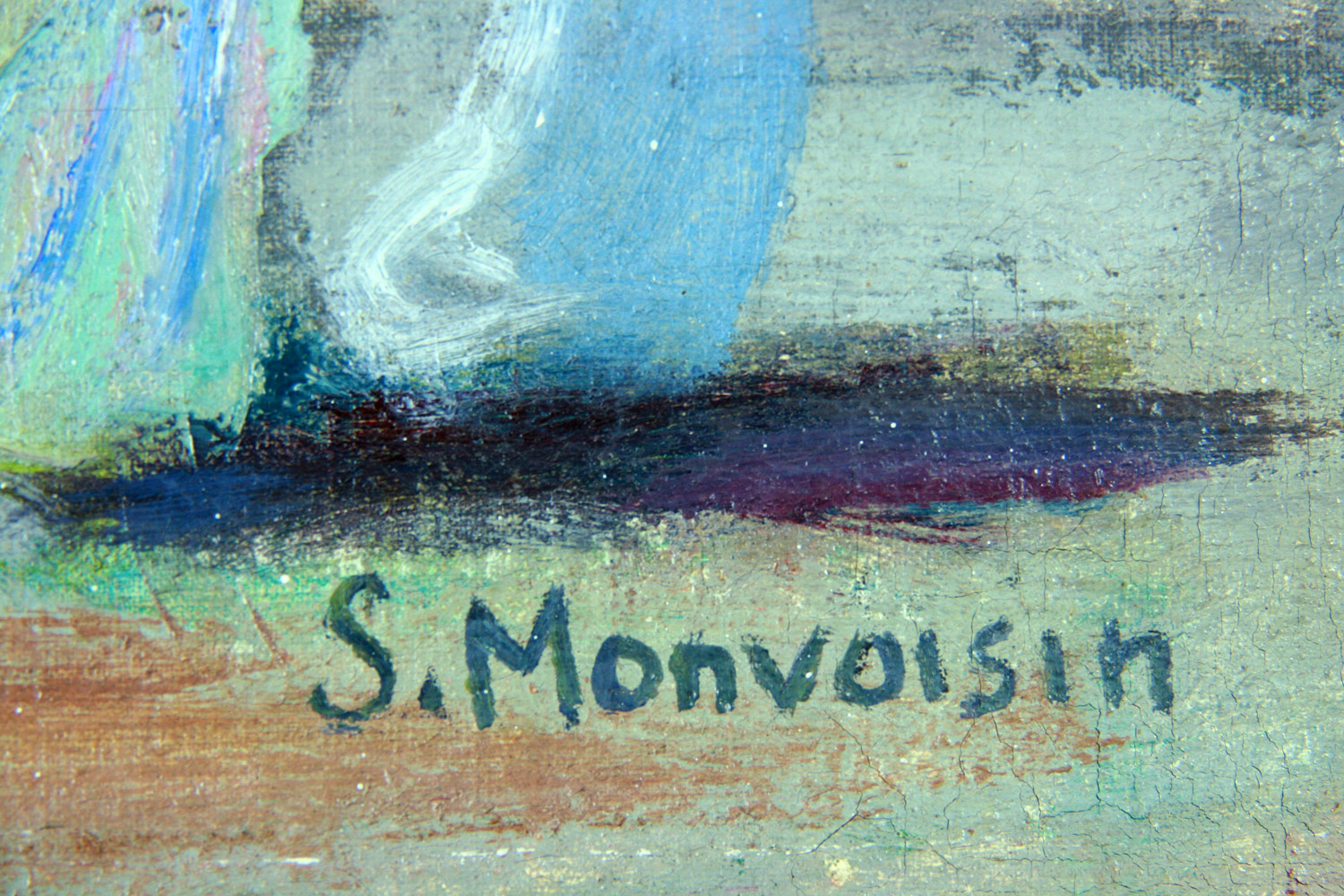 MONVOISIN, Simón – Francia 1907 - 1985- Pintor especializado en temas norteafricanos, Simon Monvoisin se muestra heredero de los últimos orientalistas del siglo XIX, si bien su lenguaje es ya completamente moderno, sintético en sus formas, especialmente cuando trata temas de figura, sin embargo resulta más cercano al postimpresionismo en sus paisajes. En resumen, la obra resulta una evocación del paisaje norteafricano, con la monumentalidad de la arquitectura del Magreb y la presencia dominante del terreno volcánico o montañoso de regiones del norte de África cuyos pintores tenían un interés especial por mostrar tipos humanos y costumbres a los espectadores europeos, para quienes estas escenas eran “exóticas” y evocadoras de culturas lejanas.