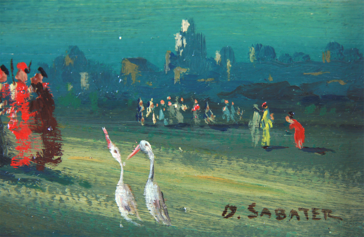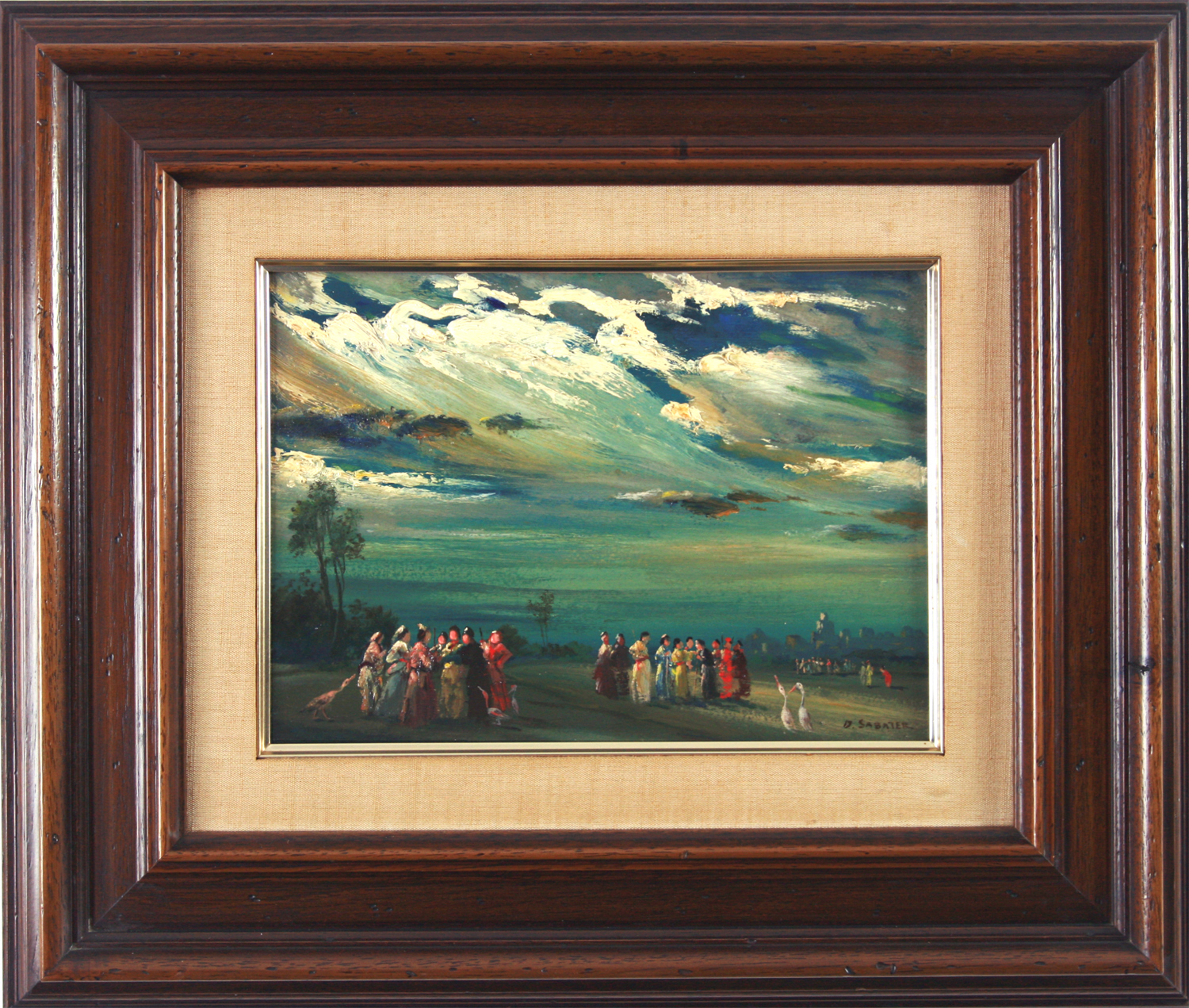 SABATER SALABERT, Daniel – Valencia, 1880 – Barcelona 1951 -- Se formó en Barcelona, donde realizó dos exposiciones individuales antes de iniciar una serie de viajes por América y Europa, donde completó su formación y realizó numerosas exposiciones. Finalmente afincado en París, regresó a España en torno a 1950. De entre sus muestras individuales cabe destacar la celebrada en el Círculo de Bellas Artes de Madrid en 1953. Cultivó un estilo enmarcado dentro del academicismo simbolista, y fue denominado “el pintor de las brujas”, dado que éstas eran uno de sus temas predilectos. Técnicamente, destacó por su factura suelta y muy controlada, que alcanza un abocetamiento enormemente expresivo, y por su cromatismo brillante, heredero del impresionismo del siglo XIX. Está representado en el Museo Pío V de Valencia