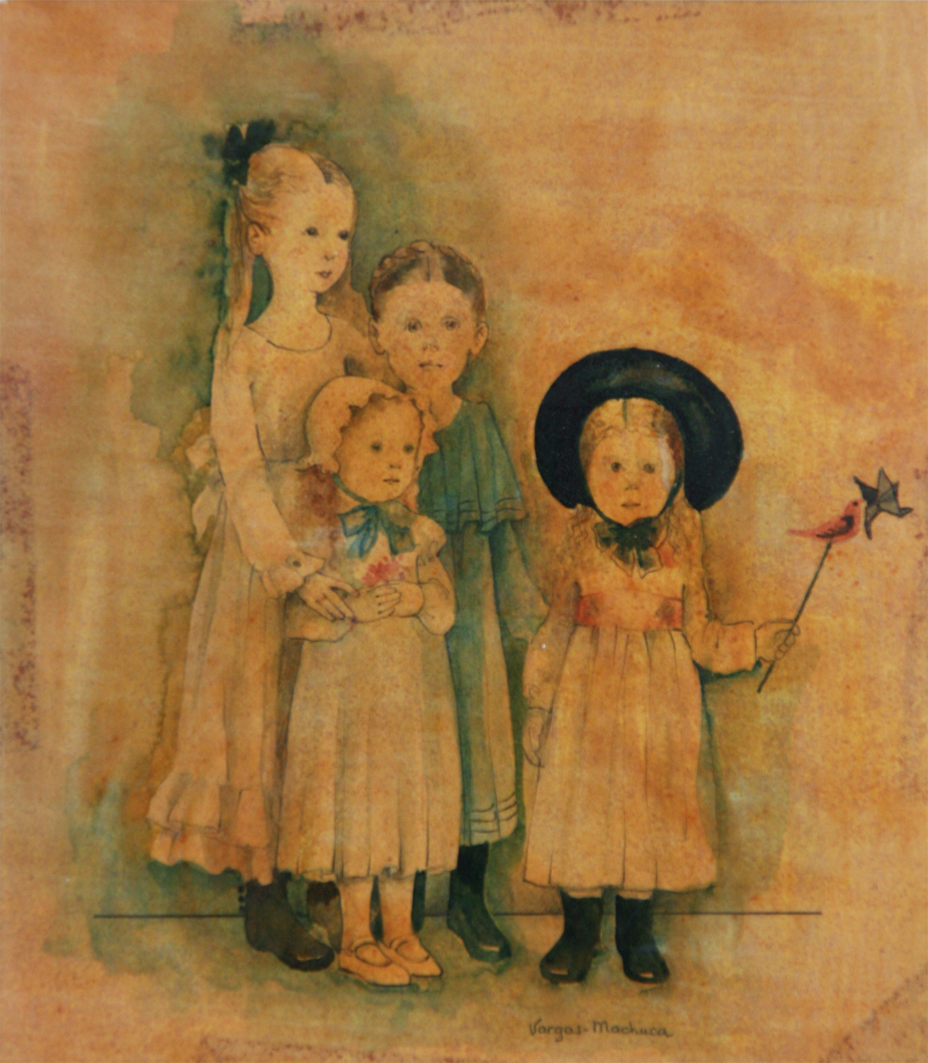 VARGAS MACHUCA, Maria José. - Málaga 1949 - Estudió en la Escuela de Artes y Oficios de Málaga. Ha realizado trabajos de grabado en el taller Gravura y editado carpetas junto a otros pintores. Realizó un curso de talla en madera en la Escuela de Artes Plásticas y Diseño de San Telmo. También produce algunas obras en cerámica. Colabora con ilustraciones en revistas especializadas, carteles y portadas de libros como: Papeles de Poesía, Jarazmín, El Camaleón, Litoral, Feria del Libro de Málaga y Puente de Plata. En la última etapa combina la realización de esculturas y objetos de diferentes materiales con la pintura. La artista se mantiene fiel a sus narrativas figurativas bajo formas muy diversas. La mayoría de sus pinturas, entre 2011 y 2012, son recreaciones en blanco y negro de antiguas fotografías del álbum familiar, retratos de la artista, de su familia, de sus hermanos, de sus compañeras del colegio, sin embargo las imágenes basadas de un impecable dibujo, son usadas como simples modelos para provocar emociones e inquietudes en base a unas distintas variaciones del color.