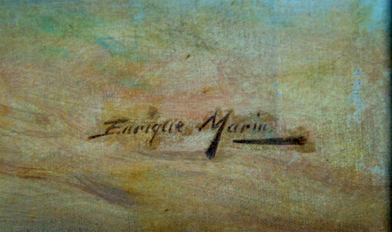 MARÍN SEVILLA, Enrique .- Granada 1870 - Madrid 1940. Pintor, acuarelista y dibujante perteneciente a la Escuela Andaluza del siglo XIX, coetáneo del escultor malagueño Enrique Marín Higuero con el que se han producido frecuentes confusiones de atribución. Se dedicó principalmente a la acuarela, especialidad que dominaba con gran maestría y soltura. Sus obras al óleo de paisajes, aunque más escasos, denotan frescura y alegría en el tratamiento del color, características más propias de la acuarela. Después de su muerte en 1940, la confusión entre este pintor granadino y el artista de Arriate comenzó a darse en la prensa española, principalmente en publicaciones como ABC, lo que dio lugar a agrabar la confusión y que su obra apareciera posteriormente mal atribuida al escultor, por relacionar su firma "E. Marín" con la de éste.