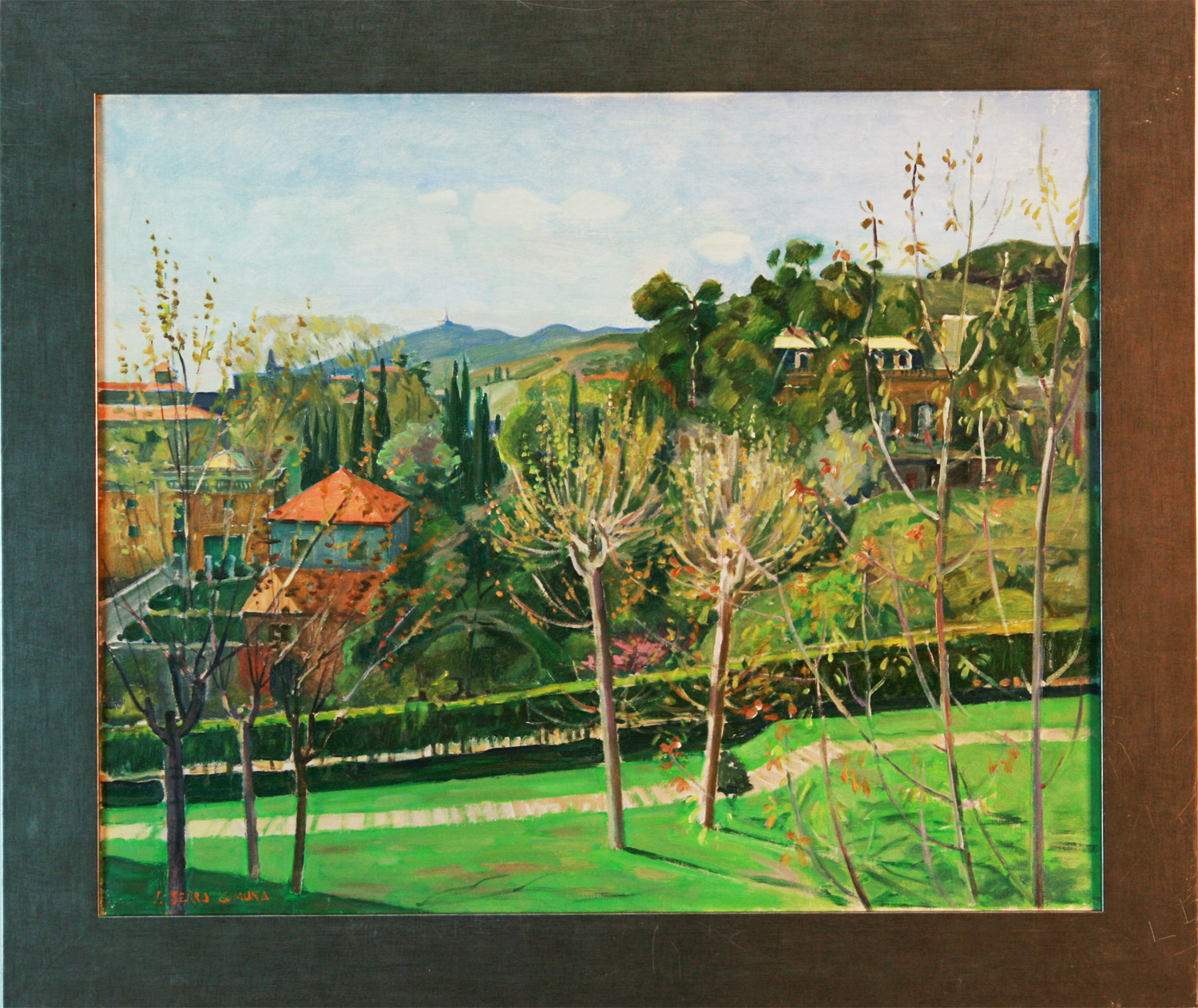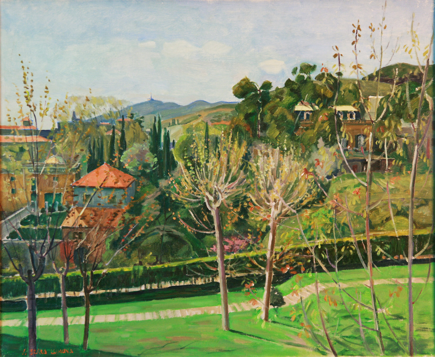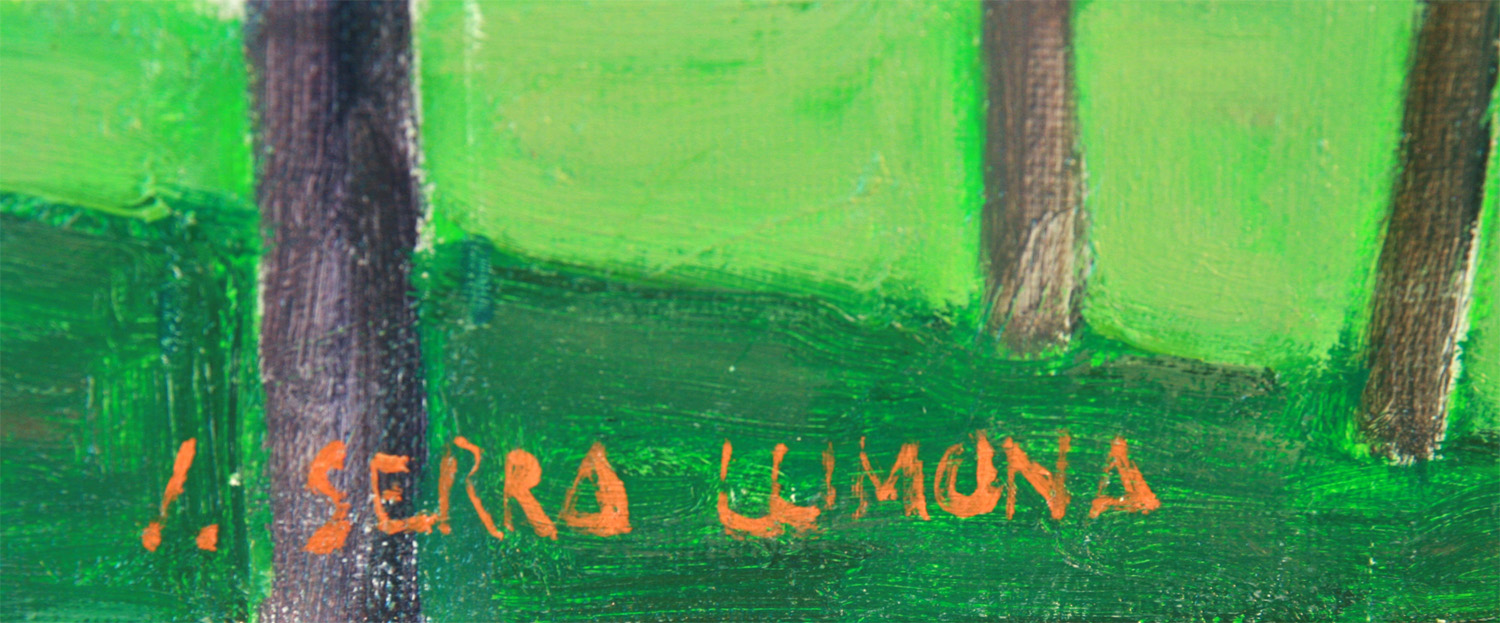 SERRA LLIMONA, Josep - Atmetlla del Vallés (Barcelona) 1937 - Descendiente de ilustre familia de artistas por parte materna se inició en la pintura junto a Ramón Rogent . En 1960, obtuvo el premio de Pintura de la barcelonesa Sala Parés, y un año más tarde el premio del Instituto Francés, obteniendo una beca para estudiar en París. En ésta ciudad, frecuentó la Academia de La Grande Chaumière, siendo discípulo del pintor Jaques Busse. En 1961 realizó su primera exposición individual en la Sala Vayreda de Barcelona, donde expuso también en 1962 y 1964. En 1968 pasó a formar parte del grupo de pintores de la Sala Parés, realizando allí muestras individuales con regularidad, También expuso en salas de Madrid, San Sebastián, Sitges, Vic, Reus, Olot, Manresa, Gerona, Mahón , Lloret de Mar, Los Ángeles etc. Así mismo, tomó parte en numerosas exposiciones colectivas de ámbito nacional e internacional. Su obra acusa inicialmente la influencia de pintores postimpresionistas como Cézanne, entrando en contacto mas tarde, con maestros catalanes como Pruna, Josep Amat, Mompou etc.y su pintura, es el reflejo de una realidad vivida de sus viajes por países mediterráneos, con los que resalta sobre todo de sus estancias en la isla de Menorca. Practicó esencialmente, temas de paisaje, marinas, jardines e interiores, en los que a menudo aparecen ventanas y balcones abiertos a una luz diáfana e intensa, auténticos protagonistas de sus cuadros. Por lo demás, es la suya, una pintura de invariable corrección técnica, coherencia compositiva y pulcritud de líneas, caracterizándose por su serenidad de atmósferas y un peculiar tono intimista. Además de la pintura al óleo y la acuarela, desarrolló una amplia producción, de dibujos, litografías y grabados, siendo toda su obra ampliamente reconocida por críticos y coleccionistas sobre todo de Cataluña y Baleares.
