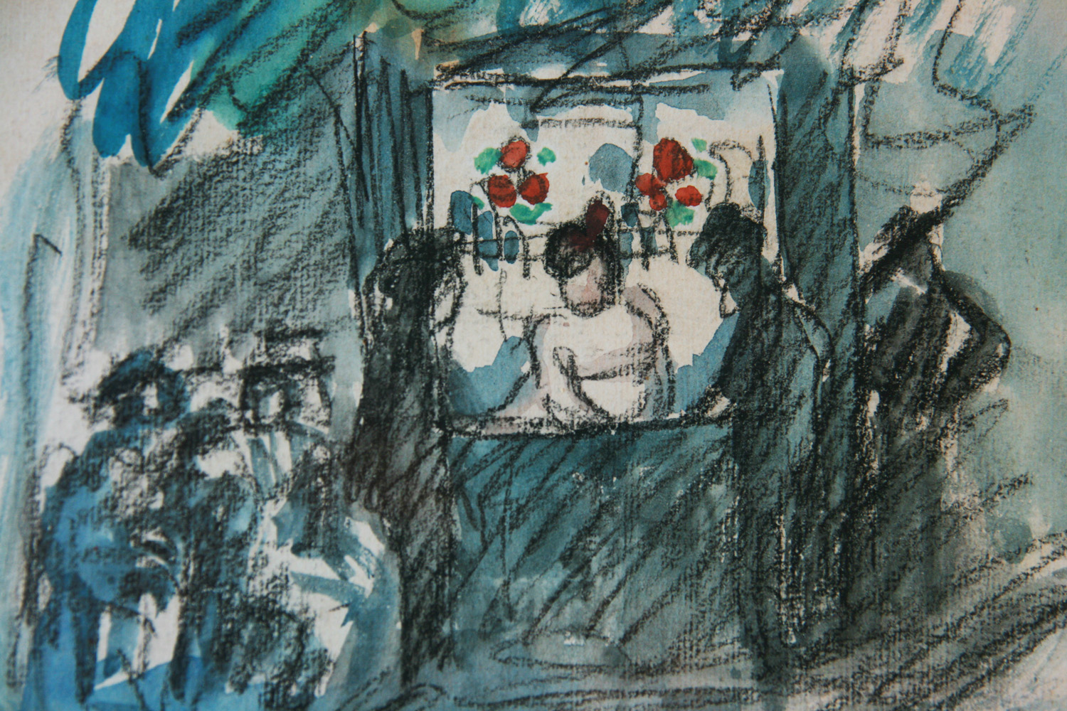 Carbón y acuarela sobre papel
