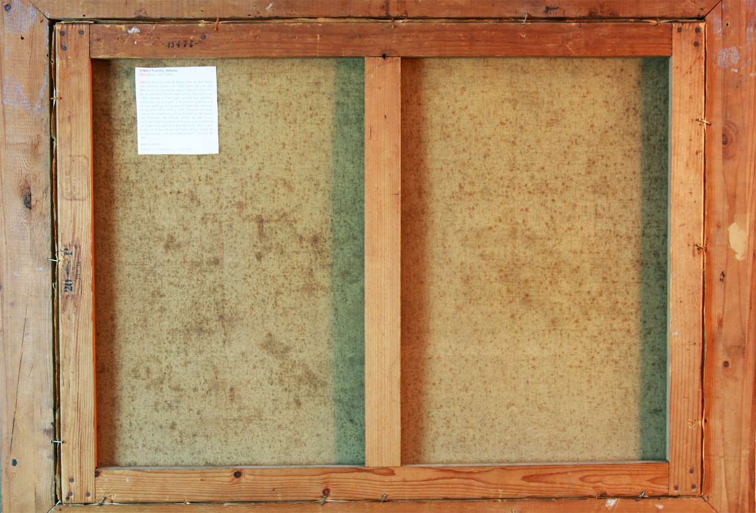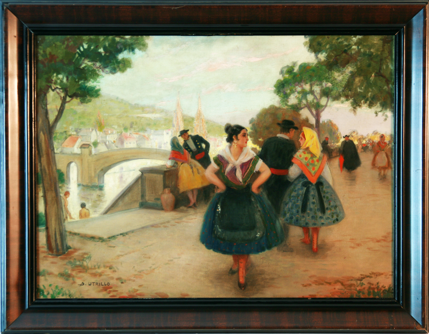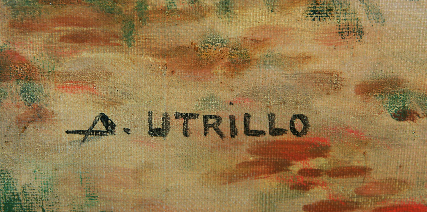 UTRILLO VIADERA, Antonio - Barcelona 1867 - 1944 - Cursó en la Escuela de Bellas Artes, con Antonio Caba. En 1885, concurrió con una marina, en la exposición que en la Ciudad Condal, que organizaba el Centro de Acuarelistas,. En 1886 la Diputación de Barcelona, lo pensionó a París para la ampliación de sus estudios. En sus principios artísticos, pintó cuadros de asunto religioso y retratos, con algunos de los cuales, tomó parte en las exposiciones barcelonesas de los años 1891, 1894 y 1896. Después se dedicó al cartelísmo y a la decoración, de interiores y establecimientos comerciales; con Rial, fundó la litografía barcelonesa Utrillo – Rialp. Fue uno de los promotores de la fundación de la entidad artística barcelonesa “ Cercle Artístic de Sant Lluc “. Viajó por Francia, Italia, Suiza, Inglaterra y Alemania donde realizó numerosas obras. En 1916, regresó a Barcelona, siendo nombrado Mayordomo de la Diputación Provincial y de la Mancomunidad, cargo que ejerció hasta 1926. Tomó parte en la decoración del llamado “ Salón de Sant Jordi”, en el Palacio de la Diputación barcelonesa, habiendo desarrollado en él la composición titulada “El Consolat del Mar “,Cabe destacar que fueron numerosas sus obras de paisaje urbano dentro de la Ciudad Condal, que hoy representan un vivo testimonio de la Barcelona de principios del Siglo XX.