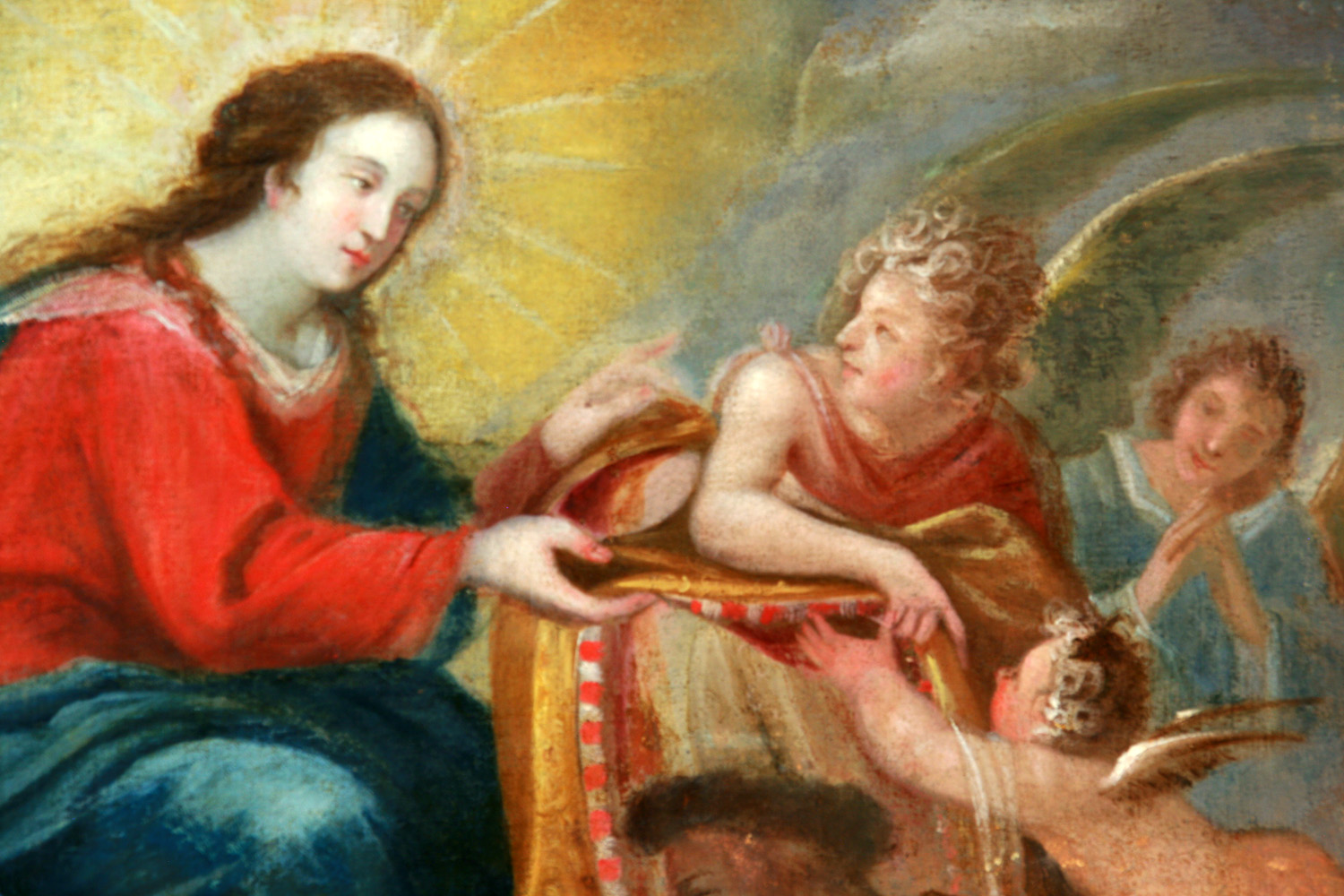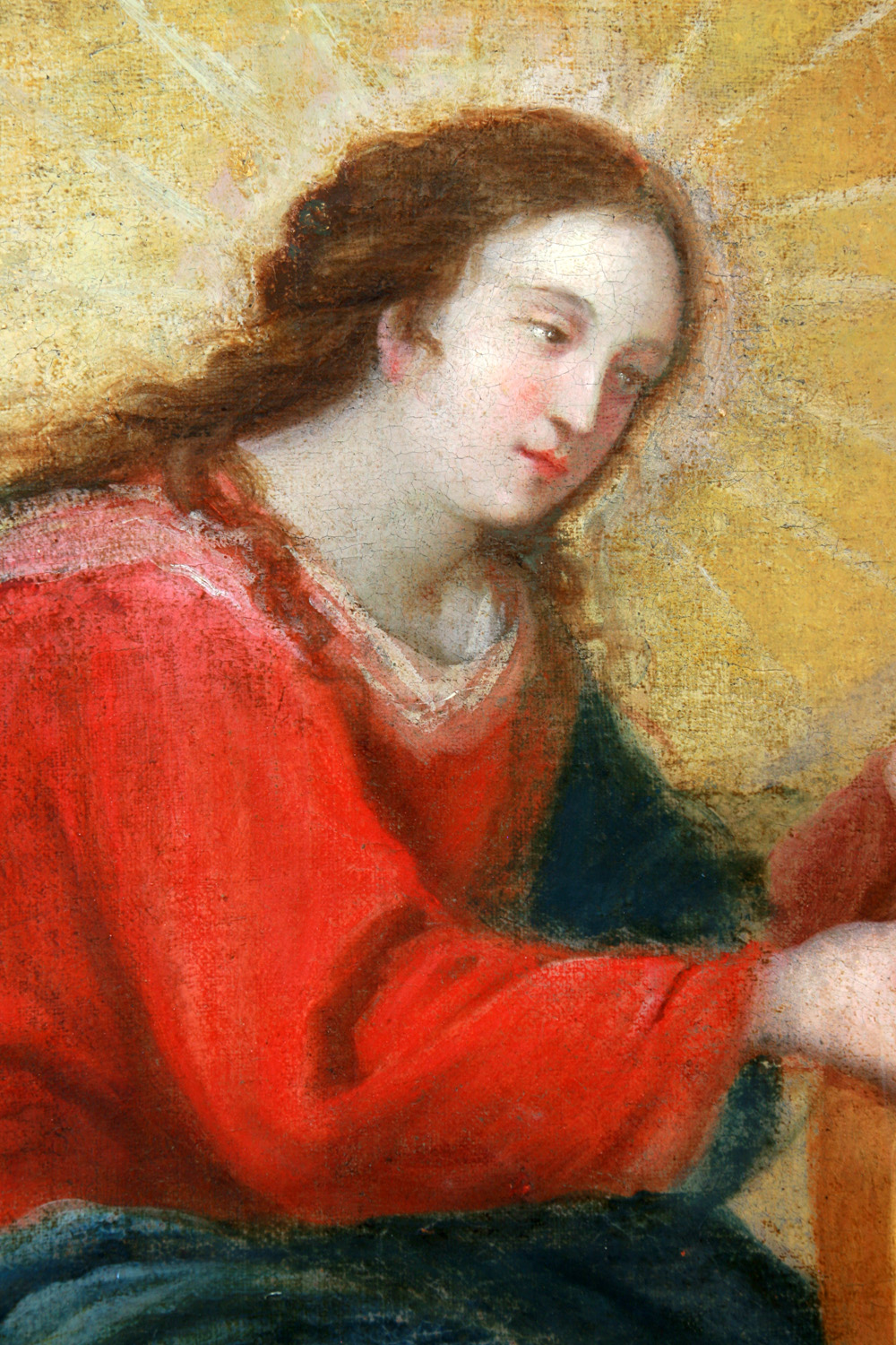 La obra representa el momento en el que la Virgen desciende del cielo para regalar a San Ildefonso obispo de Toledo, una casulla como premio a sus desvelos en la difusión de su virginidad. El Santo, estudió en Sevilla bajo la tutela de San Isidoro. San Ildefonso, Arzobispo toledano, escribió el tratado en el que defendía la virginidad de la Virgen María, que se consideró en la época de la Contrarreforma la defensa de la Inmaculada Concepción de la Virgen. El tema del milagro de la imposición de la Casulla a San Ildefonso por su devoción a la Virgen, en los siglos XVI-XVII, se popularizó tanto, que se tiene un gran número de pinturas y esculturas sobre este tema. En la obra que presentamos, el autor, se inspira en los grandes maestros españoles de la pintura como El Greco y Velázquez donde en esta obra, podemos encontrar sus huellas en la composición, el color y el uso de la luz.