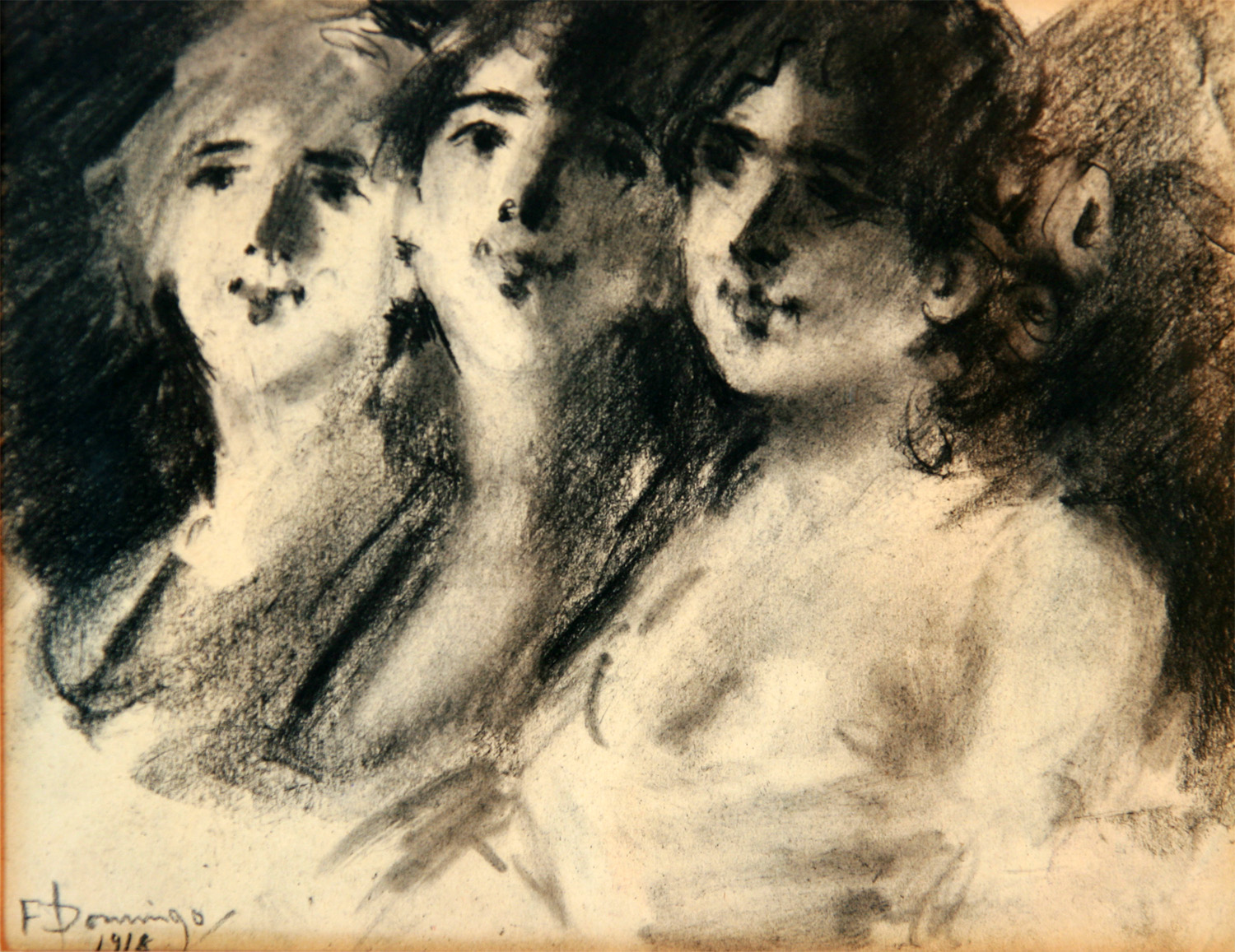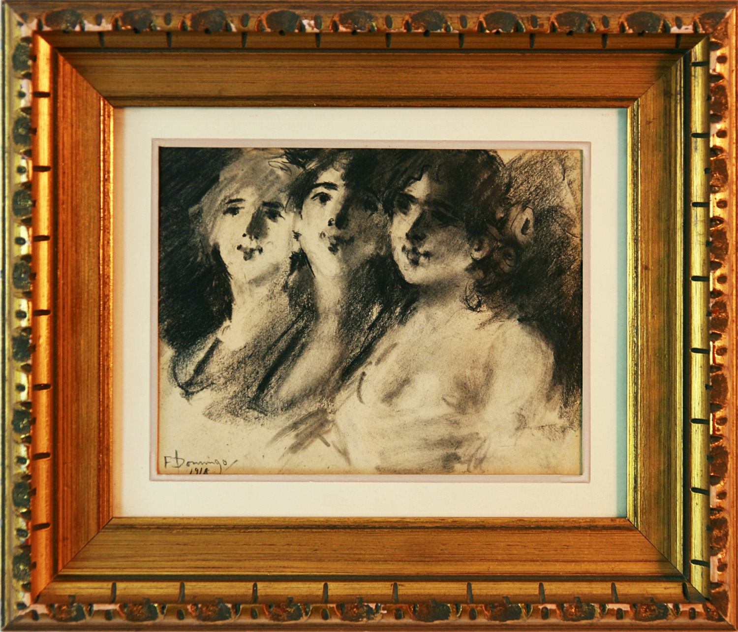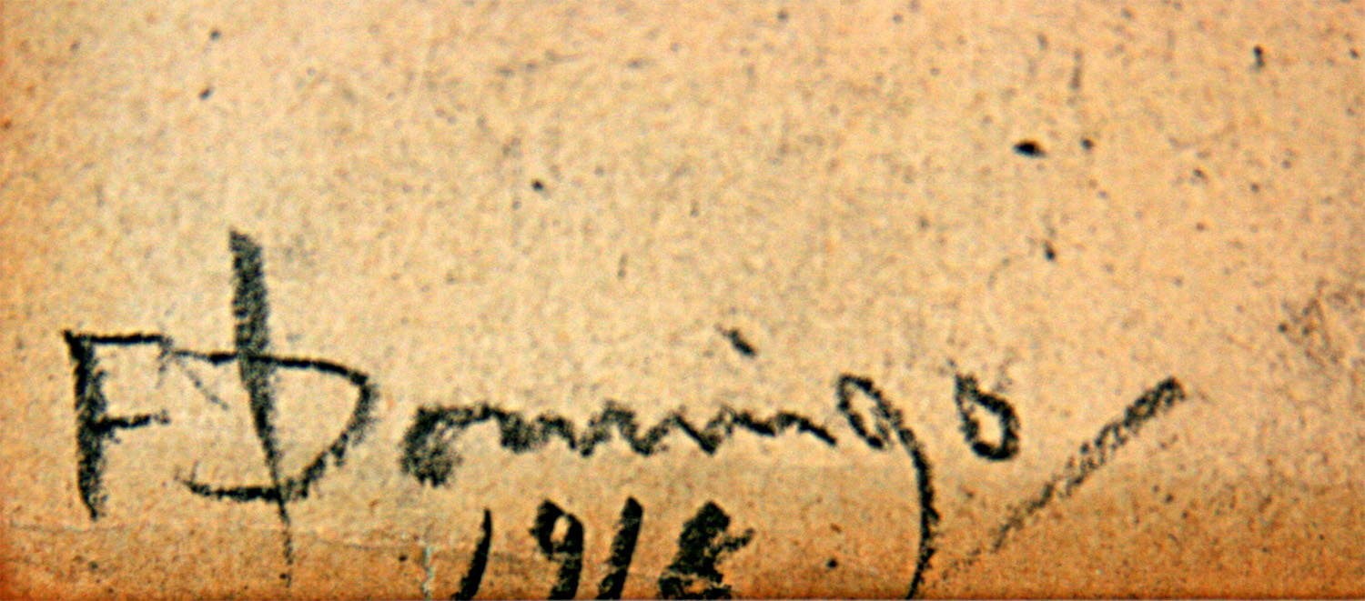DOMINGO MARQUÉS, Francisco - Valencia 1842 - Madrid 1920 - Hasta sus dieciocho años, no se tienen datos de Francisco Domingo, y es a esa edad, cuando ingresa en la Academia e San Carlos, donde tuvo como compañero a Salvador Martínez Cubells. Por los datos conservados en el archivo de la Academia, se sabe que durante el curso 1862-1863, figura matriculado y examinado en dibujo, obteniendo nota de sobresaliente. Es conveniente, comentar, que en la Exposición Nacional de 1864, inaugurada el 13 de diciembre, Domingo, presentó un cuadro titulado, “La Expulsión de los Moriscos de Valencia”, estrenándose ya desde muy joven en la senda del tema nacionalista que tan buenos triunfos le había de proporcionar de cara a su tierra. Siguió exponiendo con gran éxito en la Nacional de 1866 y 1867, en ésta última, presentando cuadros de claro matiz nacionalista con los que alcanzó medalla de oro. Animado por sus triunfos, aspira a plaza de pensionado, y la obtiene con el fin de trasladarse a Roma el 4 de abril de 1868. Inmediatamente se pone a trabajar, bajo la dirección de Eduardo Rosales, y en julio del mismo año alquila un estudio, situado en las afueras de la Puerta di Popolo. Allí, realiza estudios preparatorios, para una obra de grandes dimensiones, con destino a la exposición de Madrid. Aconsejado por el crítico de arte Peregrín García Cadena en el año 1871 de concurrir a la Exposición Nacional, presenta cuatro óleos, que fueron muy aplaudidos por la crítica, que advirtió su enérgica factura, vigoroso colorido, y los sorprendentes signos de modernidad, que la obra encerraba. Sin embargo, su obra triunfante y más sobresaliente, que le proporcionó fama internacional fue “Santa Clara”( Actualmente Museo de Bellas Artes de Valencia), llena de una línea del mas ponderado naturalismo, y que por su dicción, recuerda a Velázquez . Animado por el éxito, decide trasladarse de nuevo a Madrid, donde, según parece, logró hacerse con una importante clientela. Que Domingo era un valor en alza, es prueba, la intervención de Henri Haro, conocido marchante francés, acerca de su marcha con destino a París. Desde éste momento se produce un cambio de estilo, que culmina en el cuadro, de pequeño formato realizado con minucia técnica, a semejanza de Fortuny y Meissonnier, tan cotizados por Goupil, el mismo que, sin duda, aconsejó a Domingo, comercializando su obra, y difundiendo su producción, ya no sólo en Francia , sino también en Inglaterra a través del marchante Everard, además de los marchantes americanos, que actuaban de intermediarios, entre los pintores europeos y los coleccionistas de Estados Unidos. Domingo, pintó sin descanso y su producción fue muy fecunda y a partir de 1900, trabaja para el mercado argentino, donde a través de José Artal, se le brinda la oportunidad, de tratar directamente con diversos coleccionistas que se hicieron pintar retratos, entre los que se encuentran los de los presidentes Sarmiento y Mitre. En 1914 con motivo del estallido de la Primera Guerra Mundial, volvió a España y se afincó de nuevo en Madrid, consiguiendo el reconocimiento oficial. Ingresó en la Academia de Bellas Artes de San Fernando en 1917, y fue objeto de un homenaje público en Valencia al año siguiente. El estilo maduro de Domingo se muestra heredero de la tradición naturalista del barroco, y su pincelada llega a deshacer la materia pictórica para centrar su interés en el color y la luz. Domingo, fue además de un gran dibujante, un pintor singularmente dotado y de una paleta excepcionalmente jugosa. Su producción harto copiosa, oscila entre el naturalismo, con ciertas reminiscencias barrocas de su primera época y las pequeñas manchas de color, sabiamente abocetadas de fresca y genial espontaneidad. Casi siempre con la idea de Goya al fondo por su magistral abocetamiento, el estudio de la luz y la sugestión temática, cuando no se recrea en el género mosquetero que le valió el sobrenombre de “Meissonnier español”. Está representado en el Museo del Prado, los de Bellas Artes de Valencia, Málaga y Asturias, la Hispanic Society y el Metropolitan de Nueva York y el Lázaro Galdiano de Madrid, entre muchos otros.