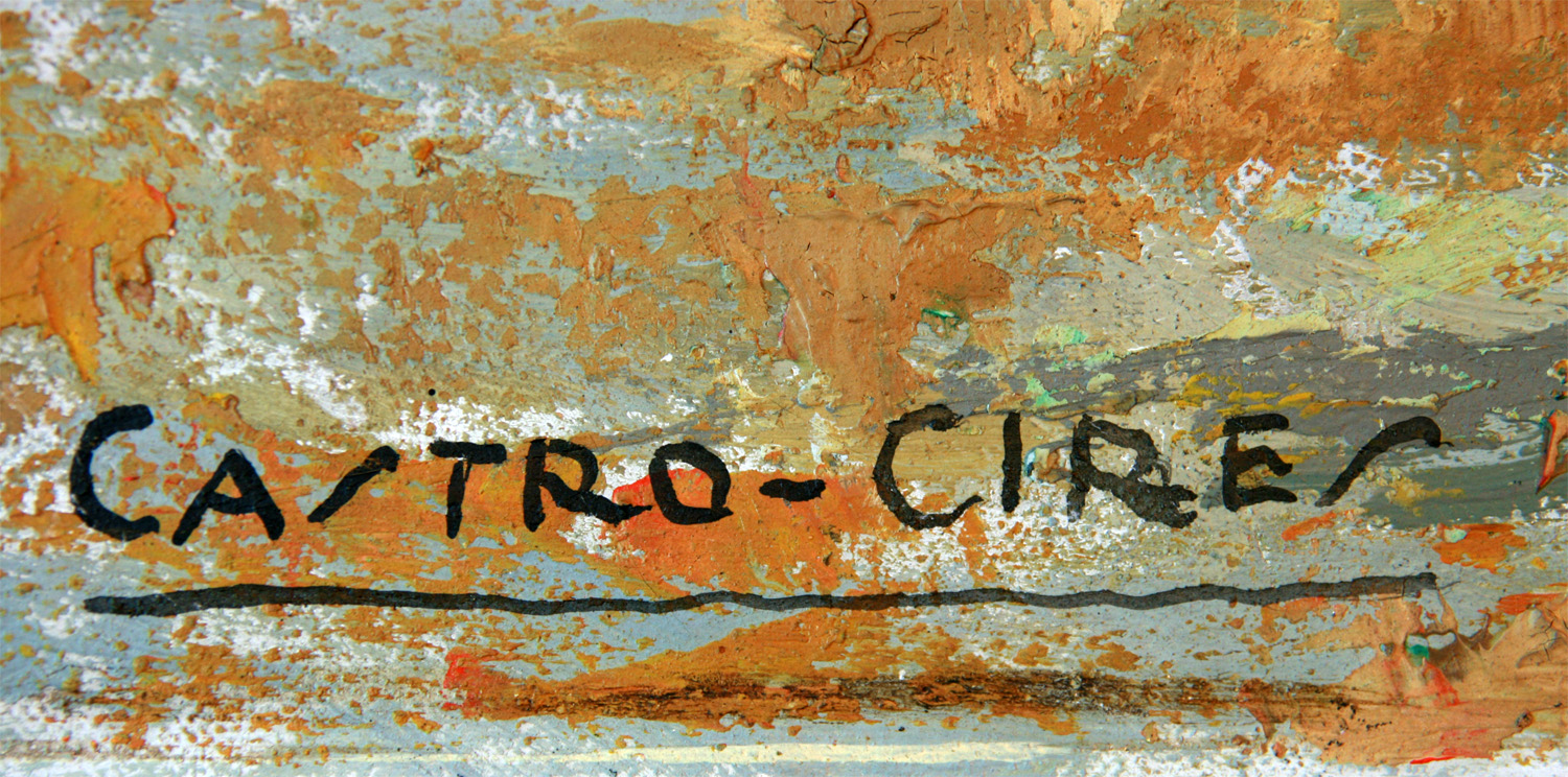 CASTRO CIRES, Raimundo – Valladolid 1892 – Madrid 1970 – En su vocación pictórica influyó su propio ambiente familiar, ya que se inició artísticamente junto a su padre, el pintor escenógrafo del teatro Lope de Vega de Valladolid, Cipriano de Castro. Se formó en la Escuela de Artes y Oficios de su ciudad natal; fue su maestro Luciano Sánchez Santarén. Más tarde ingresó en la Escuela de San Fernando de Madrid, en la que fue discípulo de Antonio Muñoz Degrain. Asistió también a las clases del Círculo de Bellas Artes, donde recibió orientaciones de su paisano Anselmo Miguel Nieto. Terminados sus estudios viajó a París y a su regreso a España, en 1915, fijó su residencia en Valladolid, desde donde recorrió toda Castilla pintando sus pueblos y tipos costumbristas. Su primera exposición de gran éxito fue aquel mismo año en el Museo Nacional de Arte Moderno. Sus paisajes rurales, de gran sencillez y sentido lírico, se distinguen por el empleo de una luz diáfana y reverberante, característica de los veranos abrasadores de Castilla. Su pintura de paisaje, que al decir de Eugenio d’Ors se adelantaba a su época por su indudable modernidad, muestra afinidades con la de su paisano Aurelio García Lesmes y se enmarca dentro de un postimpresionismo de refinadas gamas cromáticas. Si bien sus escenarios más frecuentes pertenecen a la provincia de Valladolid, recorrió varias veces todo el territorio castellano y leonés en búsqueda de motivos para su obra. Fueron muy representativos de su pintura los cuadros de sobrios y recios labriegos, viejos aldeanos y alegres mozas castellanas, tipos que a veces acusan claras influencias de la pintura vasca (hermanos Zubiaurre, Arteta...). Su pintura fue también muy bien acogida en el norte de España, donde expuso sus temas castellanos. Como resultado de esos frecuentes viajes a San Sebastián, Bilbao, Asturias y Santander, pintó bastantes cuadros de ambiente marinero. Fue, además, un sensible y elegante retratista, y cultivó también la pintura mural y otros géneros. Establecido en Madrid a partir de 1927, participó en varias exposiciones nacionales de Bellas Artes y expuso con éxito en la capital de España, destacando la primera de ellas, la celebrada ese mismo año en el Museo de Arte Moderno. Aunque inmerso en el ambiente artístico madrileño, retornó con frecuencia a su ciudad natal, en cuyo Salón de Actos del Ayuntamiento realizó varias e importantes exposiciones.