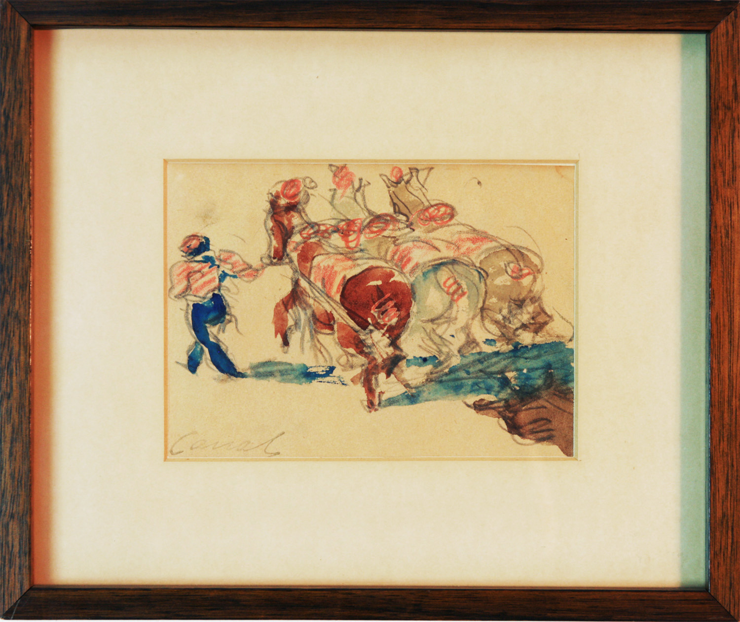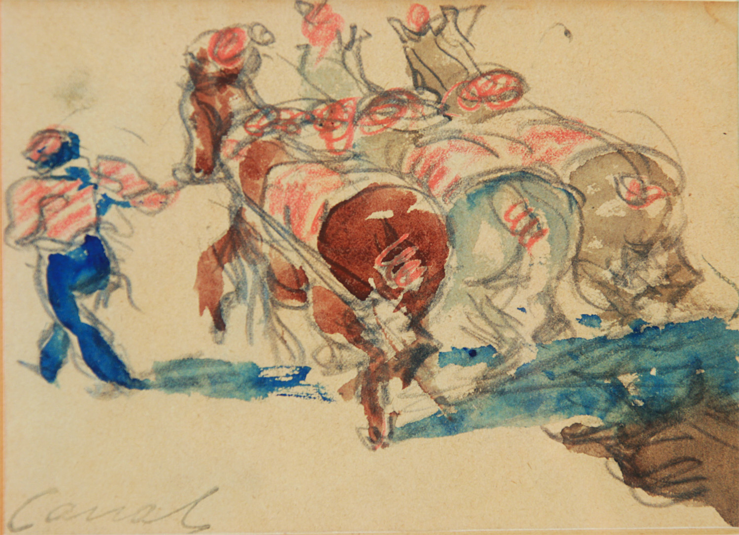 CANALS LLAMBÍ, Ricardo - Barcelona, 1876 – 1931 - Cultivó el Grabado y la Escultura y sin haber tenido maestro alguno, expone por primera vez a los dieciocho años, presentando un boceto para abanico en la Exposición Nacional de Artes Industriales de 1892 celebrada en Barcelona la cual se valoró en cincuenta pesetas. Cuando cumple veinte años marcha a París en unión de su inseparable amigo Isidro Nonell que había conocido en la Escuela de Bellas Artes. En la ciudad del Sena recibe su primera formación artística formal estudiando las obras de los impresionistas y al año de residir en dicha ciudad celebra una modesta exposición en la que el crítico francés de reconocida autoridad Thiebaud-Sisson , descubre en el una personalidad destacable con cualidades de carácter propios, que desplegaron después un total desenvolvimiento. Posteriormente, y con una larga permanencia en Madrid, puede estudiar de cerca las obras maestras de la pintura española. Se traslada luego a Sevilla donde la luz, el color y la atmósfera tienen su especial intensidad, con lo que influyen en él decisivamente. Sus obras tienen desde entonces, dentro de la técnica moderna un sabor netamente español. Dibujante de trazo seguro, pastelista delicado, de una riqueza de colorido y variedad de matices inagotable. La mayor parte de sus numerosos retratos al pastel son pequeñas obras magistrales, sus paisajes son modelo de sobriedad y sus dibujos y sanguinas reviven espontaneidad ponderación y equilibrio. En 1902 expone en la Galería Durand-Ruel de Nueva York donde sus obras alcanzaron gran éxito y en París expuso una obra de gran importancia con nueve manolas con tocado y mantilla que fue elogiada y que adquirió el banquero Ivo Bosch. Tomó parte en todas las exposiciones celebradas en Barcelona desde 1907 y en las de Madrid, Bruselas, Gante y otras capitales siendo premiado con varias medallas y diplomas. En la exposición de Barcelona de 1920 ocupó una sala especial en la que se exhibieron veintisiete obras suyas, y en los años sucesivos hasta su prematura muerte, siguió laborando incansablemente. Su última obra importante fue el techo que decora una de las salas del Ayuntamiento de Barcelona. En el Museo de Arte Moderno de la misma ciudad, figuran numerosas obras del gran pintor y dibujante.
