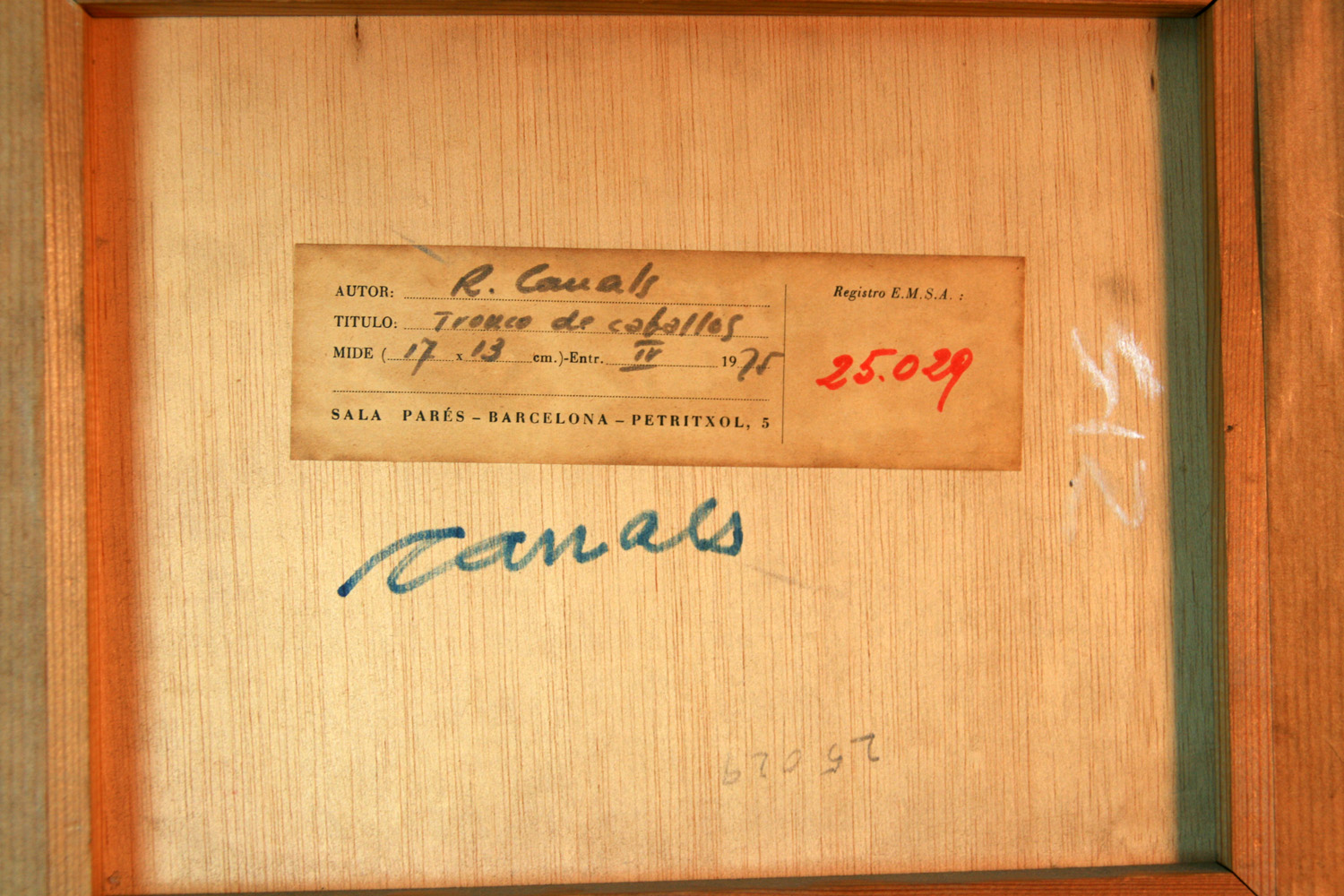 Etiqueta de la Sala Parés en el reverso, fechada en 1975
