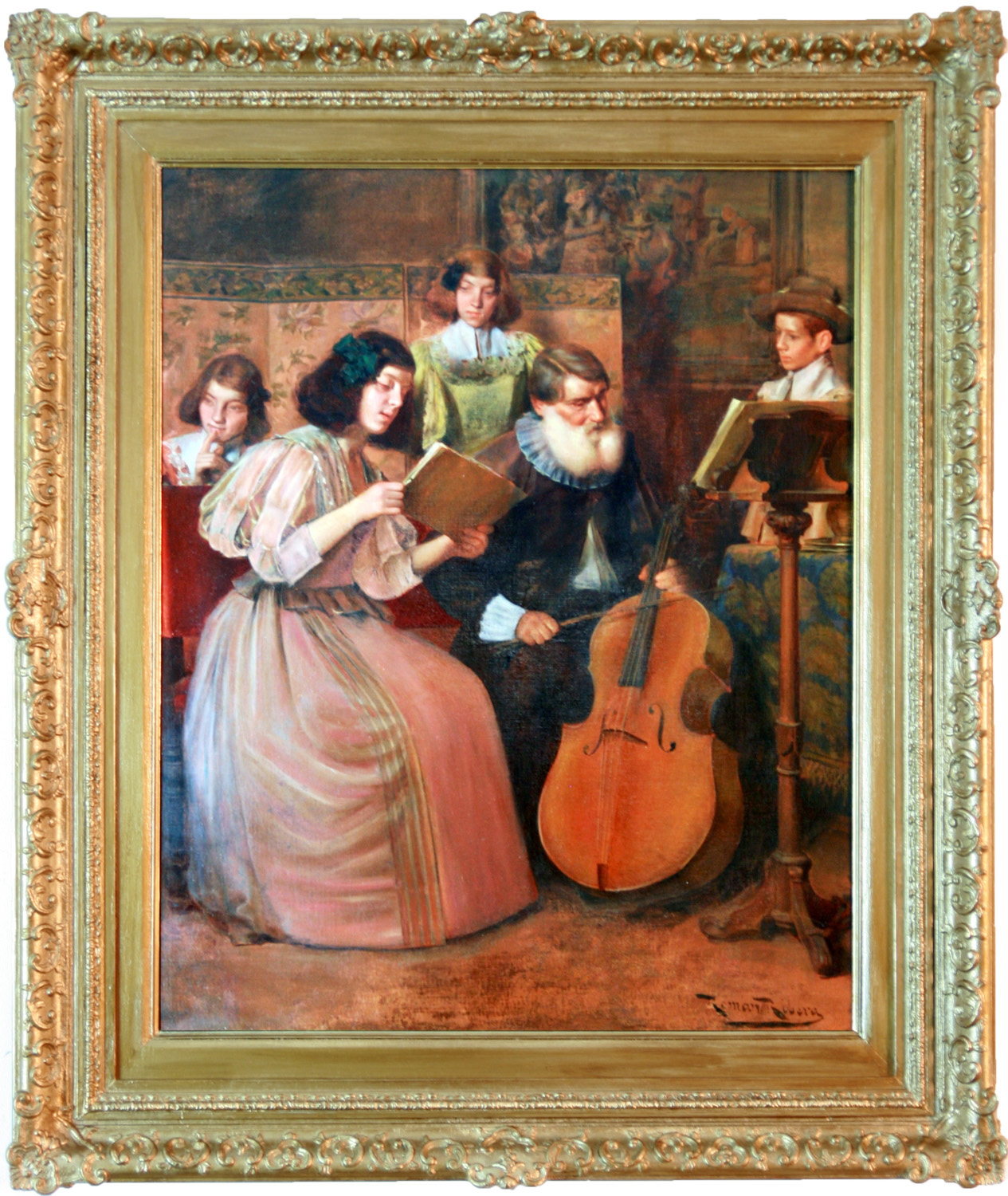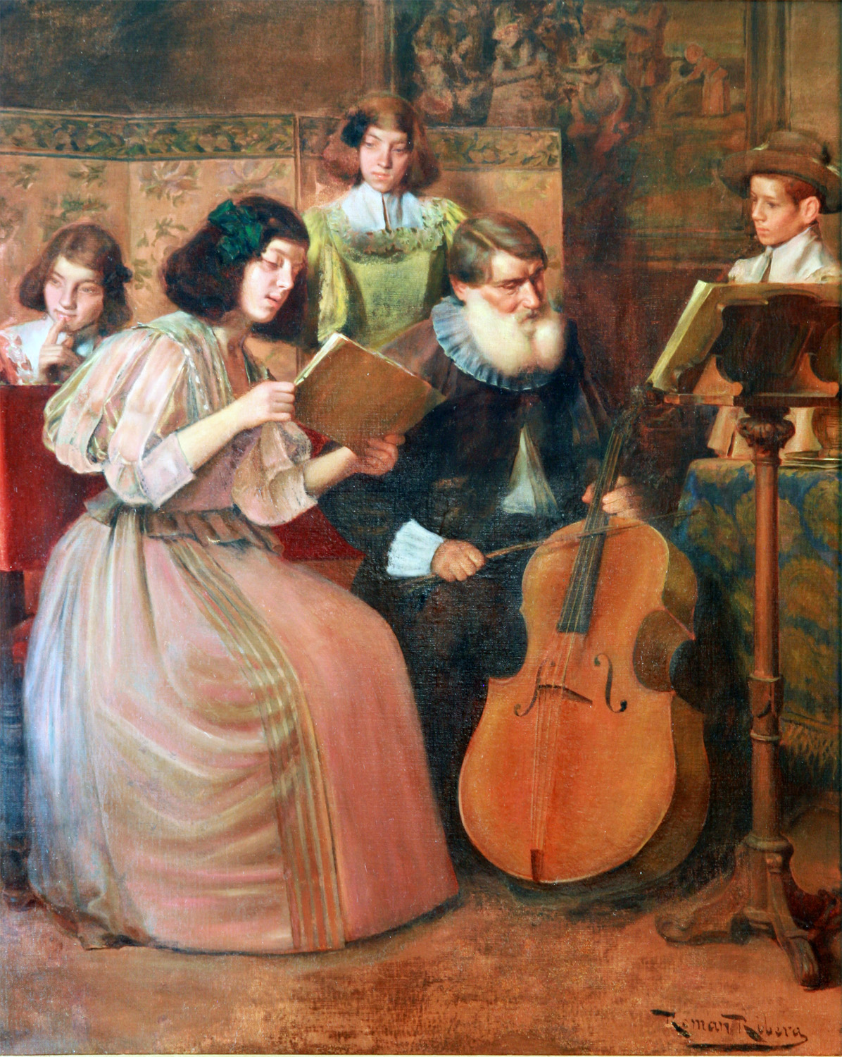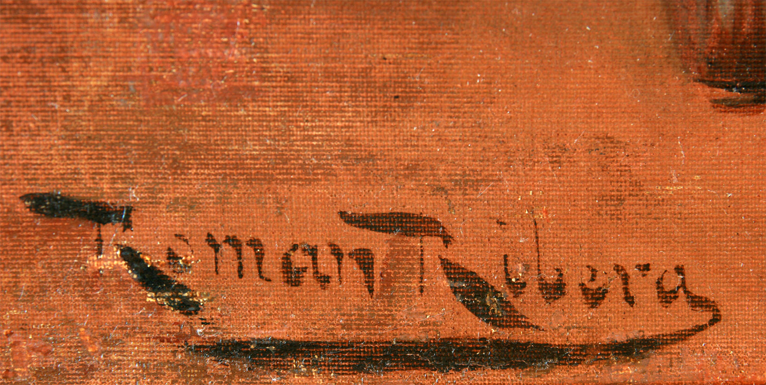 RIBERA CIRERA, Román - Barcelona 1849 - 1935 - Estudió y aprendió dibujo en la Escuela de Bellas Artes, y pintura en la Academia Borrell. Después marcho a Roma, donde residió desde 1873 a 1876 y allí acabó de perfeccionarse en el dibujo, afirmando su estilo influido notoriamente por el academicismo italiano. En 1873 concurrió a la Exposición Universal de París con tres de sus cuadros, y el éxito que alcanzaron sus obras fue por demás halagüeño, con lo que le indujo a establecerse en aquella capital desde 1877 ; allí trabajó activamente, e influenciado por el entorno, su arte alcanzó mayor refinamiento. Conoce en París al gran marchante Goupil, que le compra varios cuadros para reproducirlos y a partir de entonces se da a conocer en la capital del Sena, donde pintó innumerables obras, entre ellas Almuerzo de los Trabajadores y Café Concierto que le reportaron gran éxito. Dedicóse a pintar entonces, telas de menor tamaño, con tipos seiscientistas, que eran pequeños cuadros de historia, sin historia, que tuvieron mucha aceptación. Pintó aquellos tipos de fumadores y bebedores, jugadores, espadachines, aventureros, músicos y hombres de armas, sin olvidar las damas elegantemente vestidas, que dieron tónica al resto de su producción hasta sus últimos días. Pasado algún tiempo regresó a Barcelona, de donde no volvió a salir participando en la Ciudad Condal a numerosas exposiciones además de constantemente en las anuales y colectivas que se celebraron en la barcelonesa Sala Parés. Produjo también especialmente para la desaparecida Sala Rovira donde sus cuadros estaban constantemente expuestos. Su dibujo era impecable, y su colorido, aunque muchas veces convencional en las luces, era ostensiblemente rico en las tonalidades, y en sus cuadros en los que se encuentran, salidas del baile o del teatro y escenas de Carnaval, tenían una marcada distinción, retratando con fidelidad los últimos años del siglo XIX y principios del siglo XX. Gran número de obras suyas están en el extranjero, y otras figuran en los Museos de Arte Moderno de Barcelona y de Madrid además de en muchas colecciones particulares catalanas y especialmente barcelonesas.