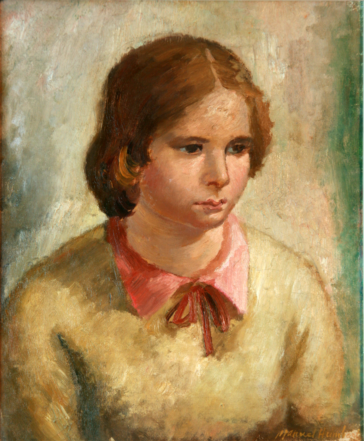 HUMBERT I ESTEVE, Manuel – Barcelona, 1890 – 1975 – Se formó en Barcelona en la Escuela de la Llotja, y fue también alumno de Francesc d’Assís Galí en su academia. Se dio a conocer en el semanario satírico “Papitu”, bajo el seudónimo Isaac, y también colaboró con la revista “Picarol”. En 1915 realiza su primera exposición individual, en las Galerías Layetanas de Barcelona. Entre 1909 y 1939 vive a caballo entre Barcelona y París, donde trabó amistad con Picasso, Modigliani, Soutine y Kisling. Miembro fundador de la agrupación Les Arts y els Artistes, en 1929 colaboró en la decoración del Palacio Nacional de Montjuic (actual Museo Nacional de Arte de Cataluña). Amigo de Xaver Nogués y J. Aragay, se sumó a la vertiente realista del noucentisme, y participó en los Salones de los Once de 1944 y 1953, además de exponer individualmente en la Sala Parés a partir de 1927. Trabajó indistintamente la sanguina, el grabado, la aguada y el óleo. Su estilo, de un lirismo contenido y frágil, se expresa especialmente a través de figuras, interiores, flores y naturalezas muertas. Realizó exposiciones en Barcelona, Madrid y París, y en 1934 obtuvo el premio Nonell. Asimismo, en 1953 fue galardonado en la Bienal Hispanoamericana de La Habana con el Gran Premio de Pintura al Agua. Actualmente está representado en el Museo Nacional de Arte de Cataluña, entre otros, así como en diversas colecciones particulares.