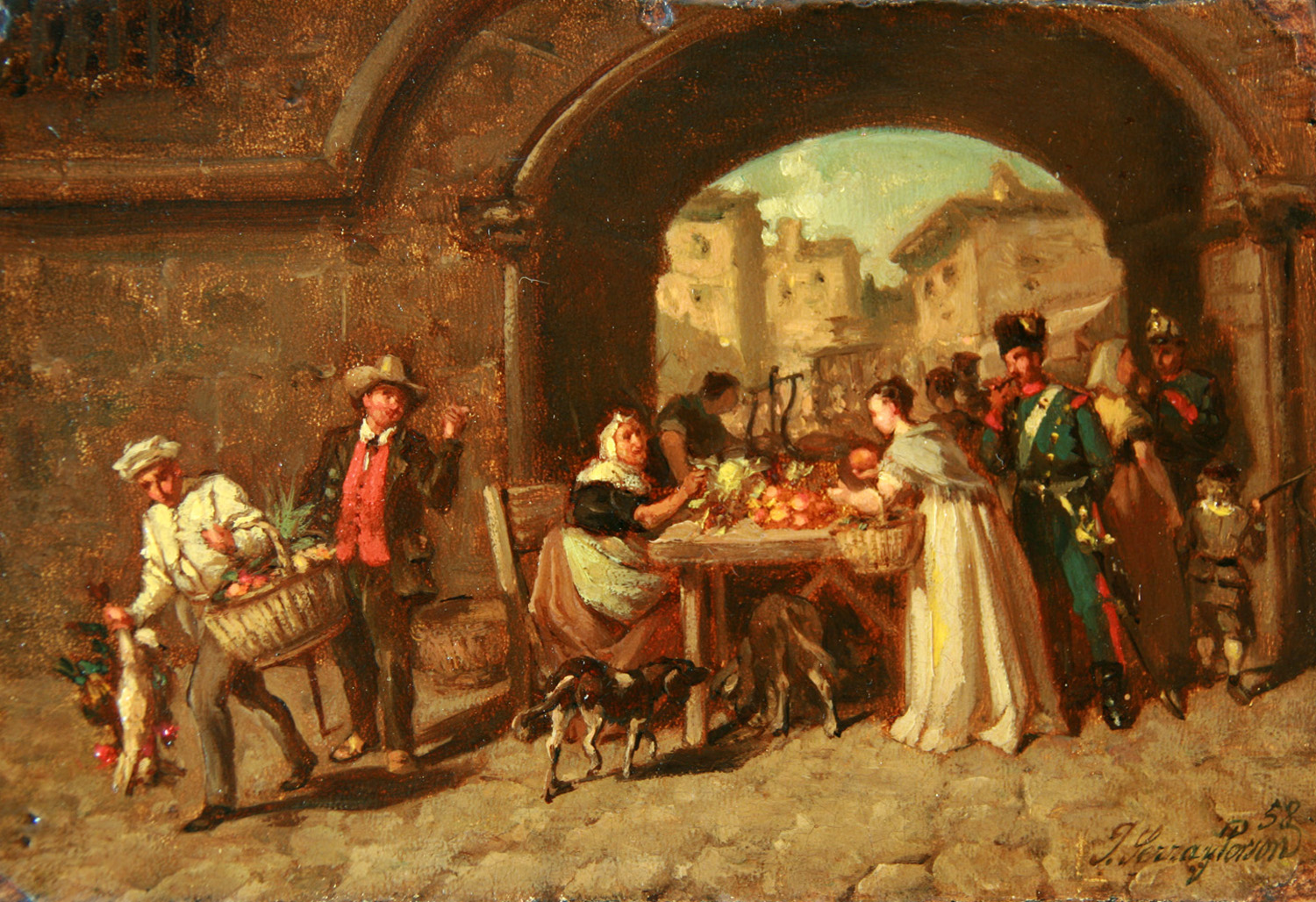 Firmado: y fechado 58 en el ángulo inferior derecho