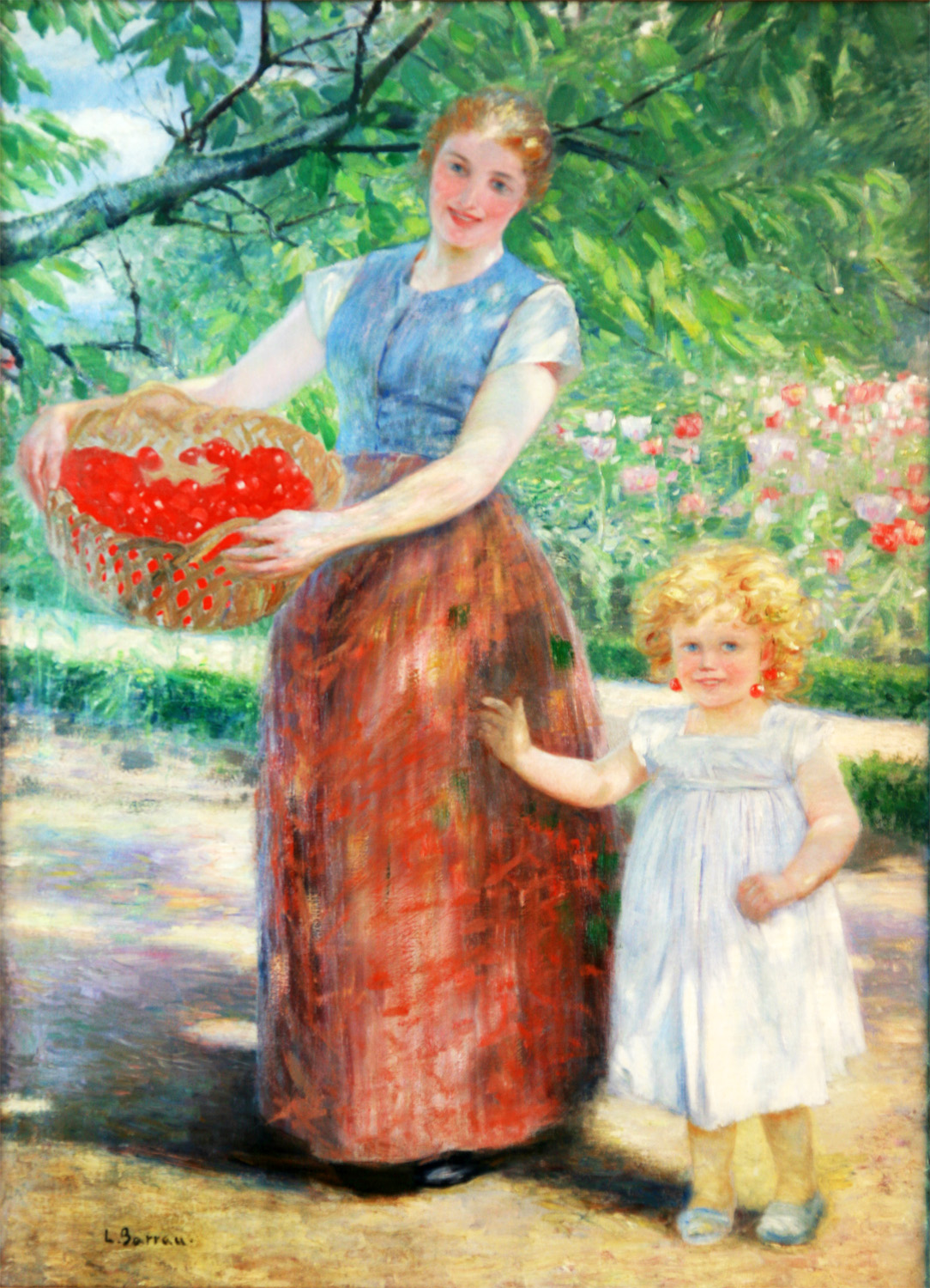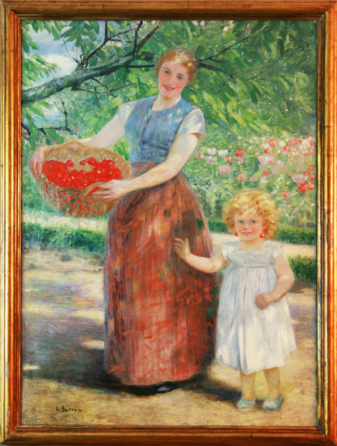 BARRAU Y BUÑOL, Laureano - Barcelona 1863 – Santa Eulalia (Ibiza) 1957 - Comenzó sus estudios en la Escuela de Bellas Artes de Barcelona, donde estudió con el pintor Antonio Caba. Después se trasladó a Madrid, donde estudió los antiguos maestros españoles en el Museo del Prado. En agosto de 1884 a los 20 años de edad el Ayuntamiento de Barcelona le concedió la pensión Fortuny, una beca similar al Premio de Roma (que se otorgaba en París), que le dio la oportunidad de estudiar durante tres años en la ciudad eterna a los grandes maestros italianos. Concurrió a varias exposiciones nacionales e internacionales, obteniendo varios premios. Sin embargo, con ese dinero Barrau viajó a París e ingresó en la Academia de Bellas Artes donde se hizo conocer como Lauréane Barrau Tuvo como tutor al pintor Jean-León Gerome En 1885, se traslada a Roma donde empezó a enviar sus obras como pensionado del Ayuntamiento barcelonés. Desde 1887 expuso regularmente en la sala Parés de Barcelona, una de las más importantes galerías españolas del momento, y la más destacada de Cataluña. Ese año de 1887 sorprendió a todos con su gran cuadro La rendición de Gerona, en el que las rígidas fórmulas del cuadro de historia se animan con una palpitación totalmente desusada. En 1888 obtuvo una segunda medalla en la Exposición Internacional de Barcelona. Y consigue un segundo premio en la Exposición Universal de Bruselas. En 1891 a los 28 años de edad, recibe el título de socio del Salón de la Sociedad Nacional de Bellas Artes de París. En 1892 obtuvo una tercera medalla en la Exposición Nacional de Madrid. A partir de este momento, se dedica a toda clase de asuntos con una paleta fresca y una factura briosa y correcta. Las Nacionales de Bellas Artes le concedieron un tercer premio en 1892 y un segundo premio en 1904. Realizó numerosas exposiciones, individuales y colectivas, en París, Barcelona, Madrid, Nueva York y Roma. Viajó por toda Andalucía, y en Sevilla pintó varios cuadros con asuntos de la fábrica de tabacos, que fueron grandemente celebrados, como lo fue siempre su producción general, muy buena parte de la cual pintó en Caldes d’Estrac (Caldetas), donde tenía su casa. En 1909 marchó a Buenos Aires, donde alcanzó provecho y buena fama. Vuelto a su país, siguió trabajando y exponiendo tanto individual como colectivamente en España y en el extranjero. Laureà Barrau obtuvo medallas en las principales ciudades de Europa y hoy sus cuadros cuelgan en museos de España, París, Bruselas, Buenos Aires, Montevideo y Río de Janeiro. En 1911 trasladó su residencia a la isla de Ibiza , donde cautivado por el encanto y la belleza de la isla permaneció el resto de sus días. En 1929 fue nombrado «societaire» de los Salones de París. Hacia 1930, Barrau y su esposa Berta Vallier se instalaron en la casa del Puig de Missa en la aldea de Santa Eulalia del Río, (Ibiza) donde Barrau pintó lo que se consideran sus mejores obras, llenas de luz y color. Permaneció en Santa Eulalia por el resto de su vida. En 1950 presentó su última exposición en la Sala Busquets de Barcelona, donde dio prueba de la lozanía y la entereza de su pintura, que se mantuvo con todas sus antiguas virtudes hasta el último momento. Su obra se conserva en el Museo del Prado, el Museo Getty (en California), el Museo de Arte Contemporáneo de Madrid, el Museo de Arte Contemporáneo de Barcelona, su casa-museo en Santa Eulalia (Ibiza), y otras pinacotecas de Buenos Aires, Montevideo, París y Río de Janeiro, además de diversas colecciones privadas nacionales e internacionales como en la Casa Masó en Girona.
