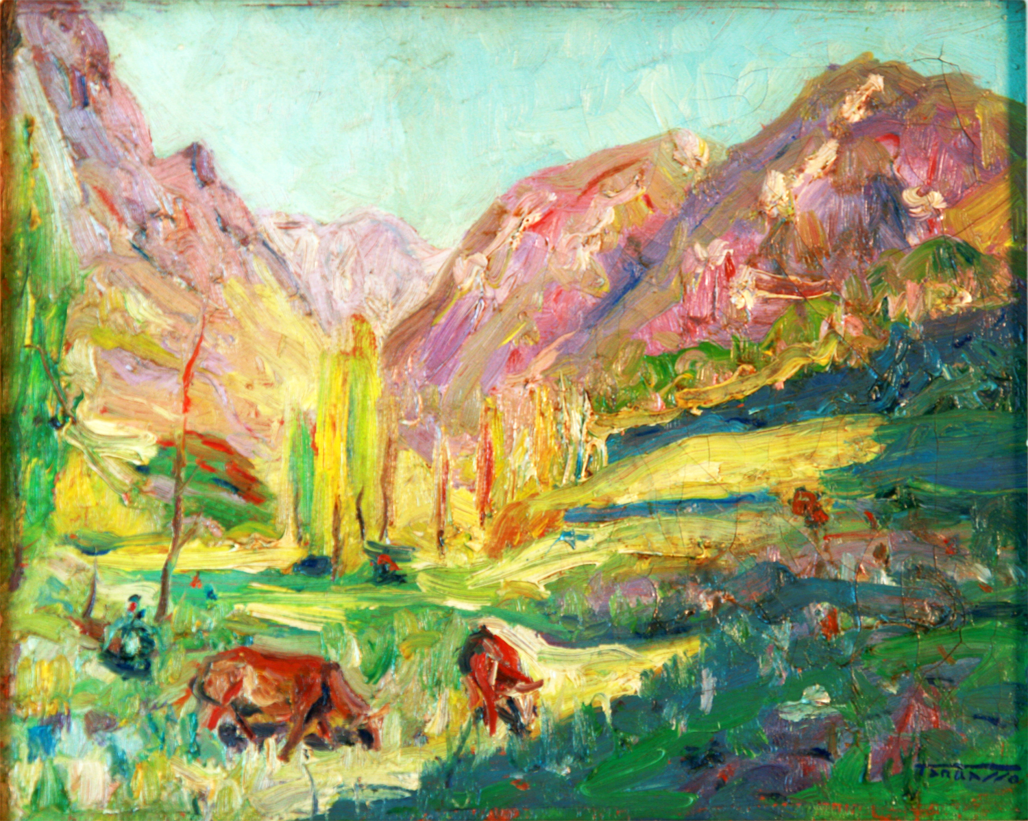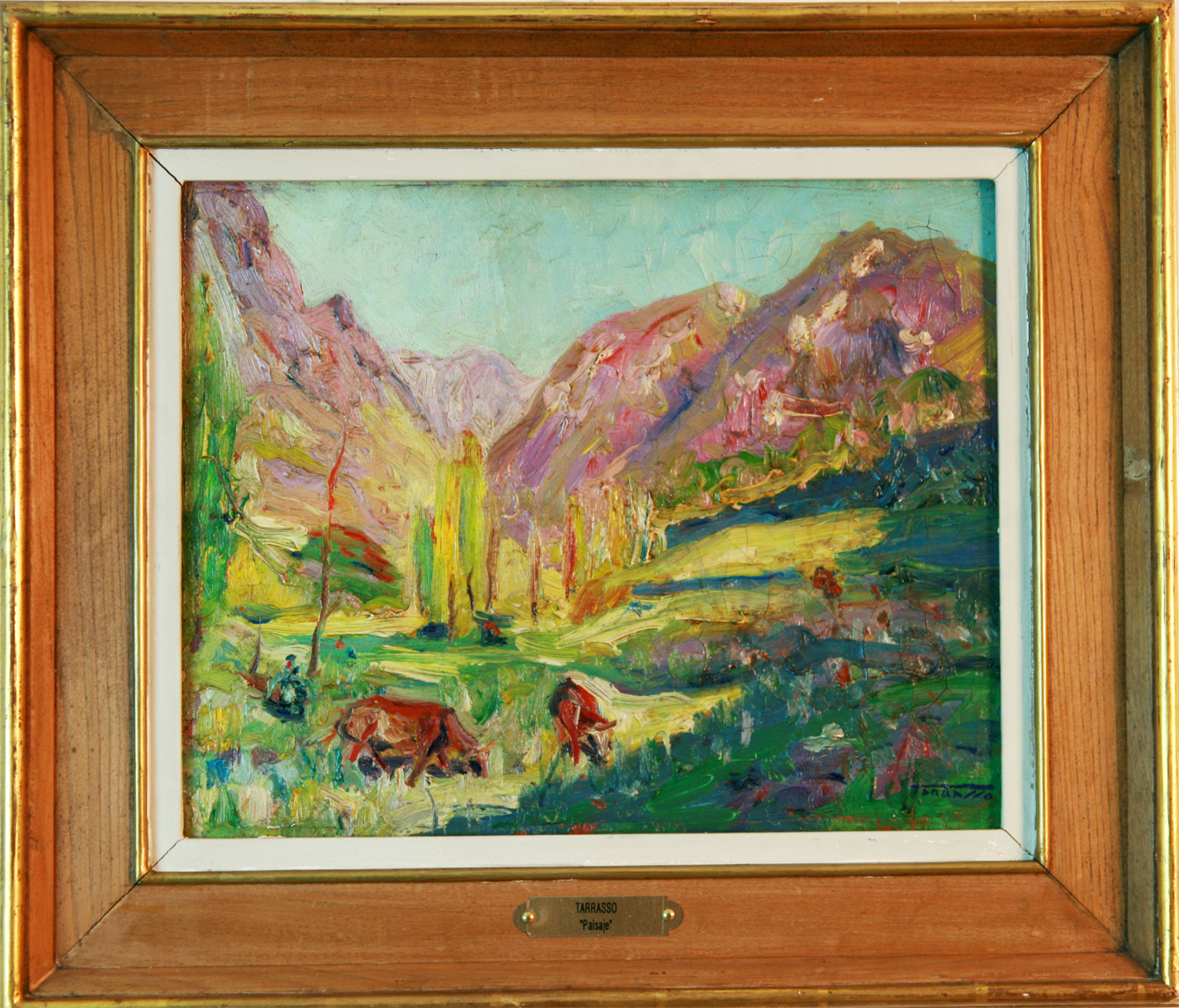 MARTINEZ TARRASSO, Casimiro – Barcelona 1900 – 1979 - Casimiro Martínez Tarrasó, conocido como TARRASSO, se formó en la escuela de La Lonja de Barcelona, completó sus estudios en París donde pudo conocer de primera mano las obras fauvistas que sacudían el ambiente artístico parisino en éste momento. Cultivó el bodegón y los paisajes catalanes y mallorquines y realizó su primera exposición en 1928 en las Galerías Layetanas de Barcelona y desde entonces se sucedieron sus muestras en Barcelona, Madrid, Palma de Mallorca y Bilbao. Entre sus premios destacan el Pollença en 1962 y el Santiago Rusiñol en 1972 así como las medallas obtenidas en diversas ediciones de los Salones de Otoño de Palma de Mallorca en 1967 – 1973 y la de Honor en 1970. La obra de Tarrassó, se caracteriza por la gran personalidad de su pincelada y colorido y su profunda obsesión por el cromatismo, determinante de una pintura profundamente sensorial y vitalista, con todo siempre fue considerado un pintor propiamente mediterráneo. A Tarrassó, se le atribuye la influencia paisajística de Joaquín Mir , sin embargo y al contrario de éste, completó sus estudios en un París por aquel entonces sacudido por la barbarie “fauve” y esto seguirá siendo visible en su obra a lo largo de toda su vida. A menudo empleaba para sus obras, grandes formatos y atrevidos acordes cromáticos ; de todos modos, y pese al desbordamiento y grandilocuencia de algunos de sus cuadros, pintó paisajes de una considerable sensibilidad, oleos de pintor sincero y de una gran ingenuidad. Solía firmar sus obras por su segundo apellido “TARRASSO”. Su obra se caracteriza por la gran personalidad de su colorido. Su obsesión por el cromatismo determina una pintura profundamente sensorial, vitalista e intuitiva. Está representado en diversas colecciones privadas nacionales e internacionales, así como en el Museo y Fondo Artístico de Porreras (Mallorca) y el de Arte Moderno Contemporáneo de Palma.