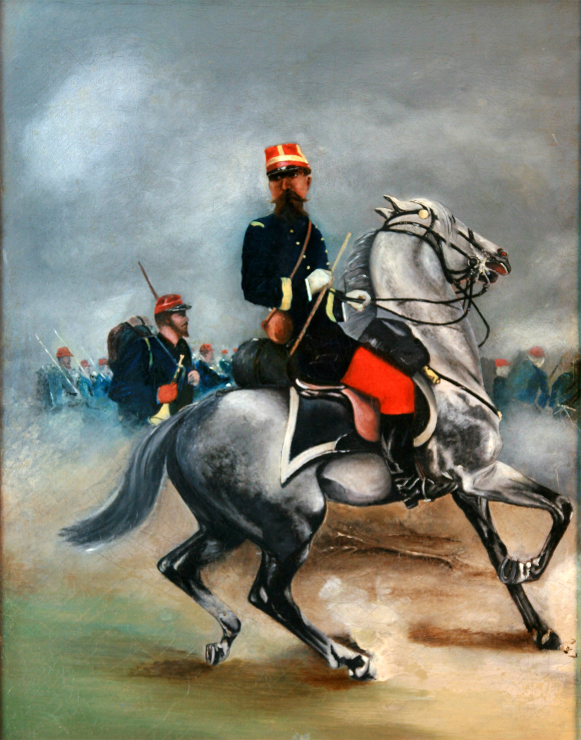 Posiblemente se trata del General Prim en la Batalla de Castillejos.