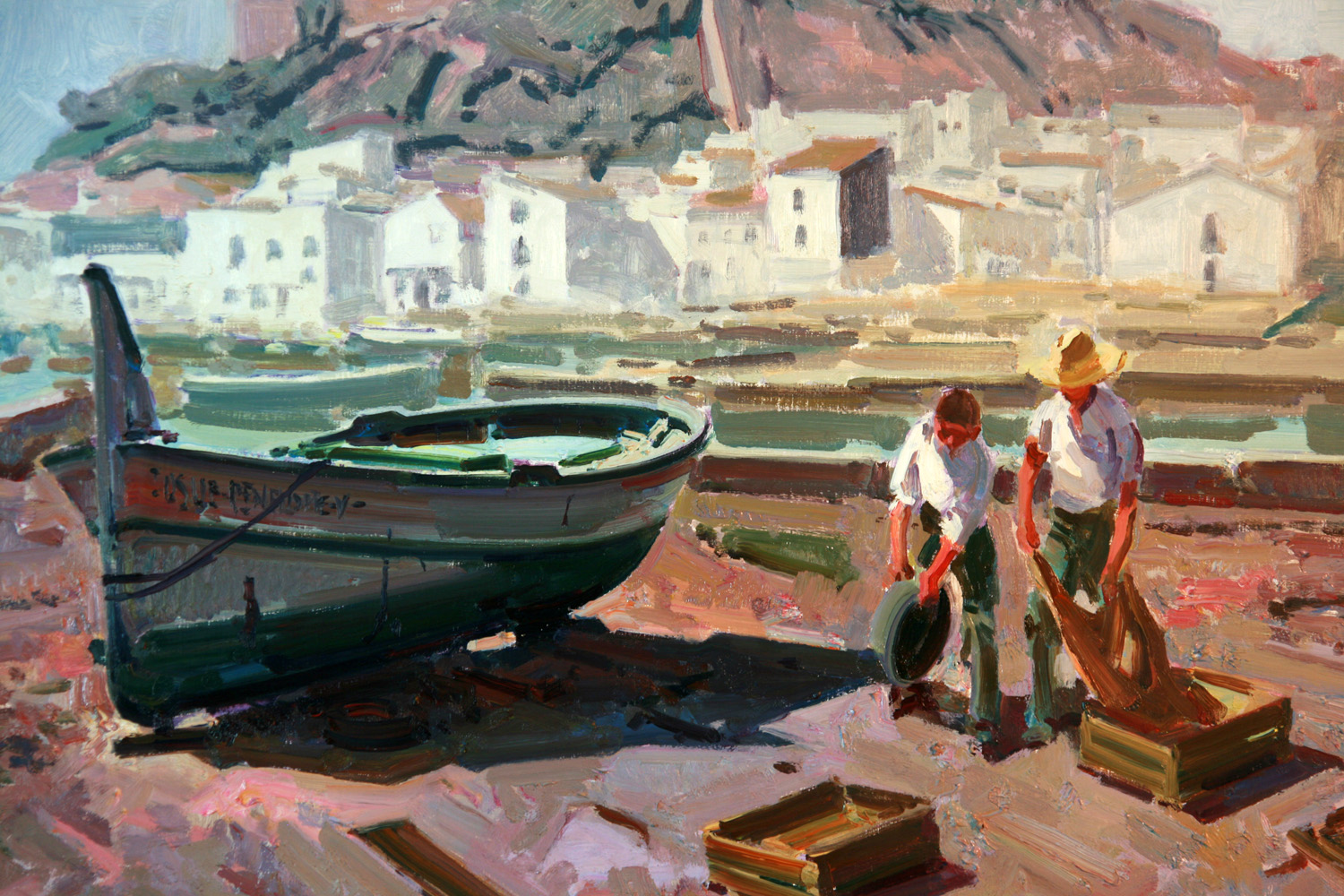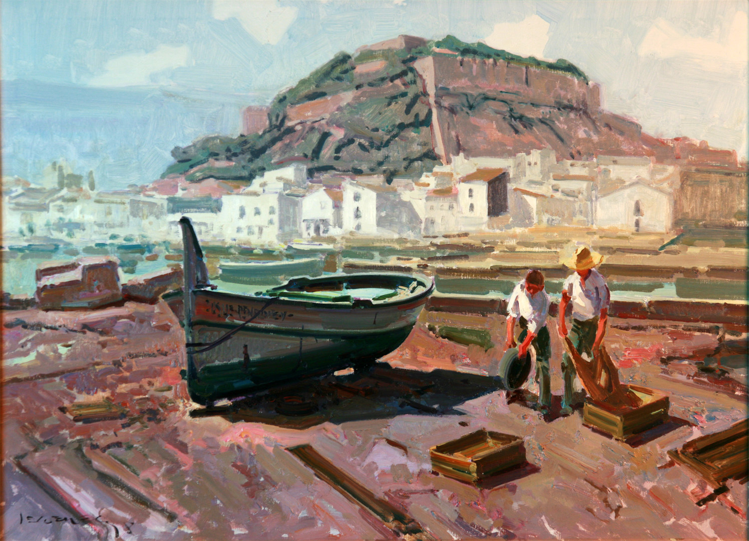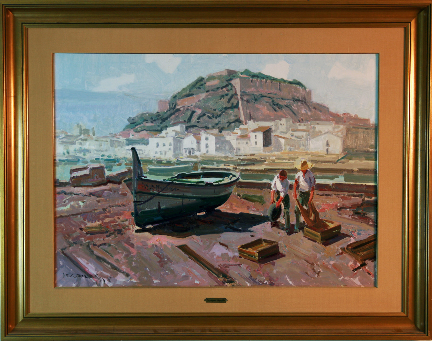 SEGRELLES DEL PILAR, Eustaquio - Albaida (Valencia) 1936 - Se formó en la escuela de Bellas Artes de San Carlos de Valencia y en la Academia Vicente Barreira. Inició su carrera como ilustrador y dibujante, trabajando para las editoriales Maga, Bardon Press, Selecciones Ilustradas y Bruguera. Su primera exposición personal, tuvo lugar en el Círculo Mercantil de Oteniente en 1957 y diez años después, fue seleccionado por la agrupación Nacional de Bellas Artes para exponer en Nueva York y Copenhague y en 1972, obtuvo una beca del Ayuntamiento de Valencia para completar su formación en la Casa Velázquez de Madrid. Durante los años siguientes, celebrará muestras personales en diversas salas de Valencia, Bilbao, Madrid, Castellón, Zaragoza y Tarragona, y a partir de los años setenta se inicia su proyección internacional, lo que le llevará a realizar innumerables exposiciones en galerías de arte de todo el mundo. Segrelles, es miembro de la Academia Internazionale Greci-Marino de Italia, y ha sido galardonado, a lo largo de su carrera, con el primer premio de pintura al aire libre del Ayuntamiento de Valencia en 1964, la Medalla al Mérito Artístico del Ministerio de Información y Turismo en el 1970, el primer premio Kaman de Sevilla en 1973, premio de la Excma. Diputación de Barcelona en 1976 y el premio Nacional y Medalla de Oro Villa de Pego (Alicante) 1976. La personalidad artística de Segrelles se caracteriza, por el uso de colores sólidos, nítidos, vibrantes y de gran fuerza expresiva. A su peculiar paleta se le une un estudiado y constante juego lumínico, fiel a la luz del mediterráneo y de su tierra valenciana. Heredero del más puro luminismo mediterráneo nos habla a través de sus pinceles de la vida de los pescadores de la costa levantina, con una facilidad sumamente expresiva y una técnica sobresaliente.