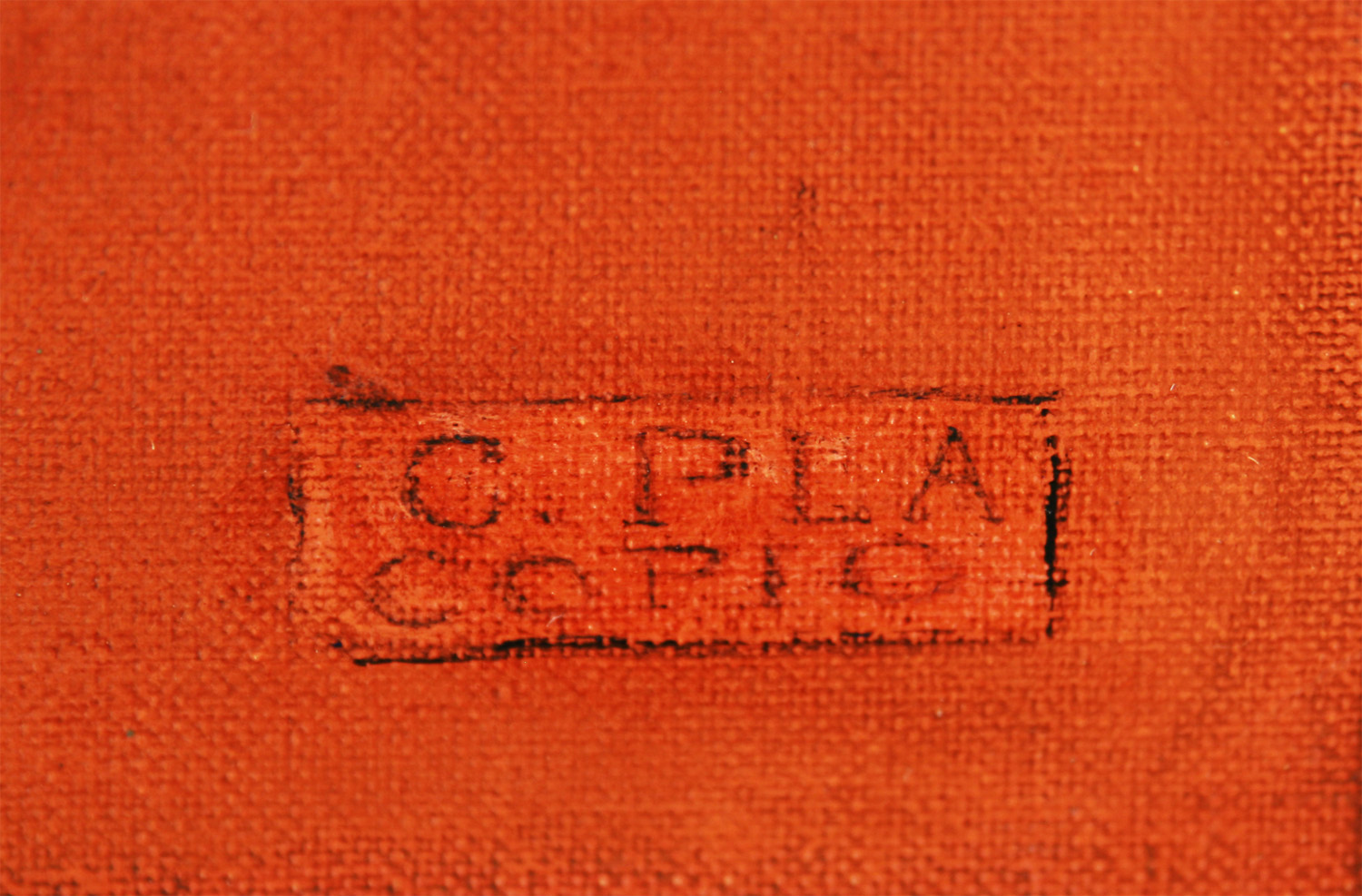 Firmado: en el ángulo inferior derecho. En el reverso, etiqueta de Cecilio Pla.