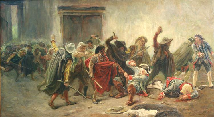 Importante obra de tema histórico, que recuerda la revuelta del Motín de Esquilache que tuvo lugar en el Madrid del 1766 con solamente una población de ciento cincuenta mil ...Ver más