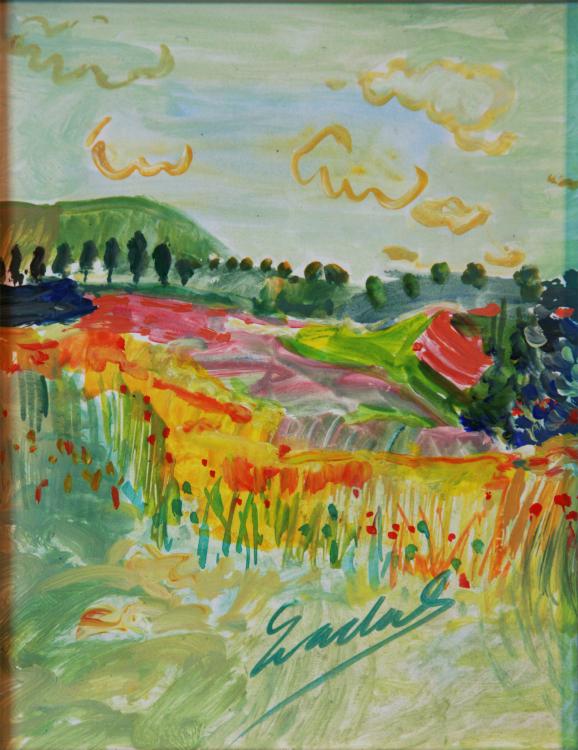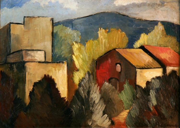 Localizado y rubricado en el reverso. Etiqueta de la galería Art Center Gallery the Claude de Vermont U.S.A. en el reverso.